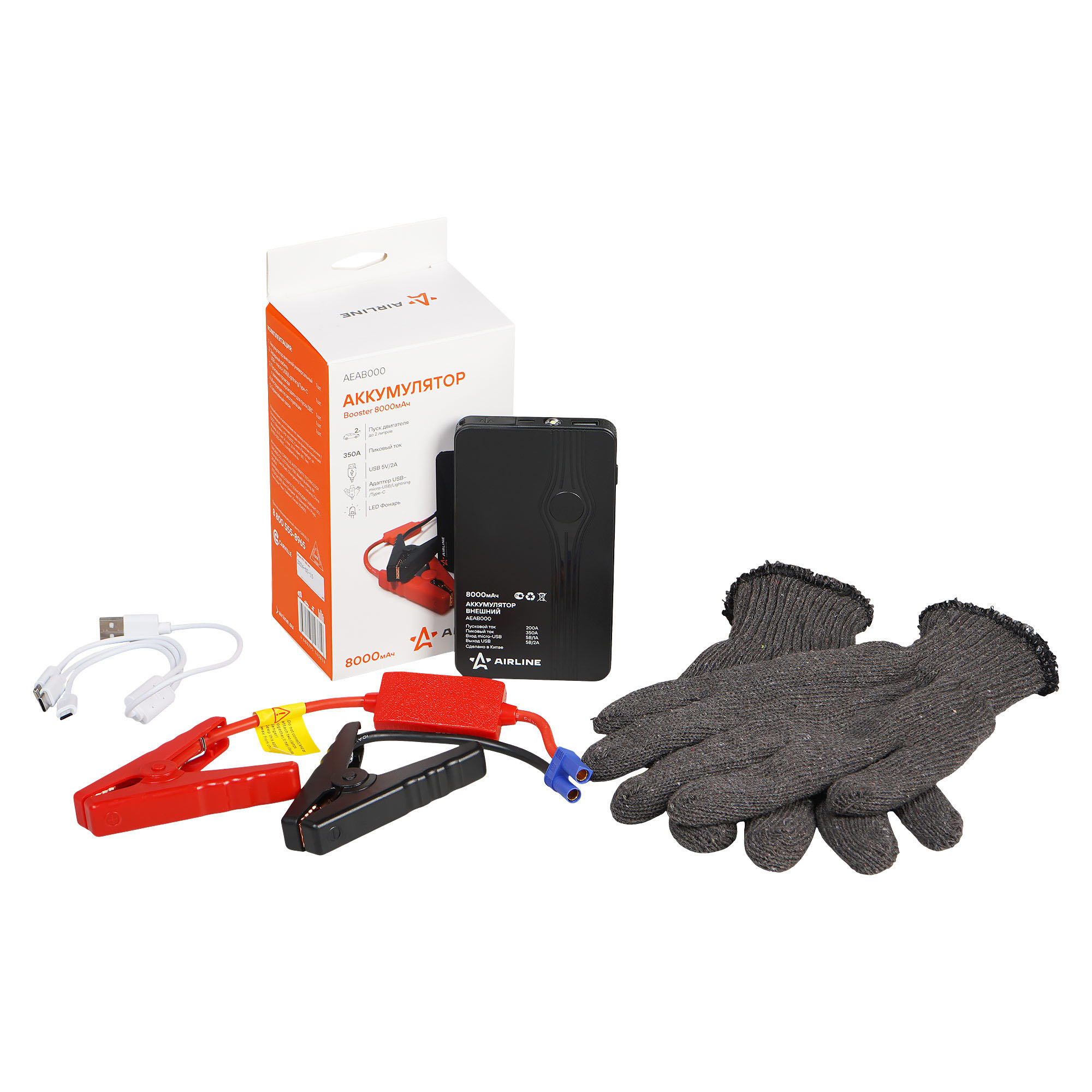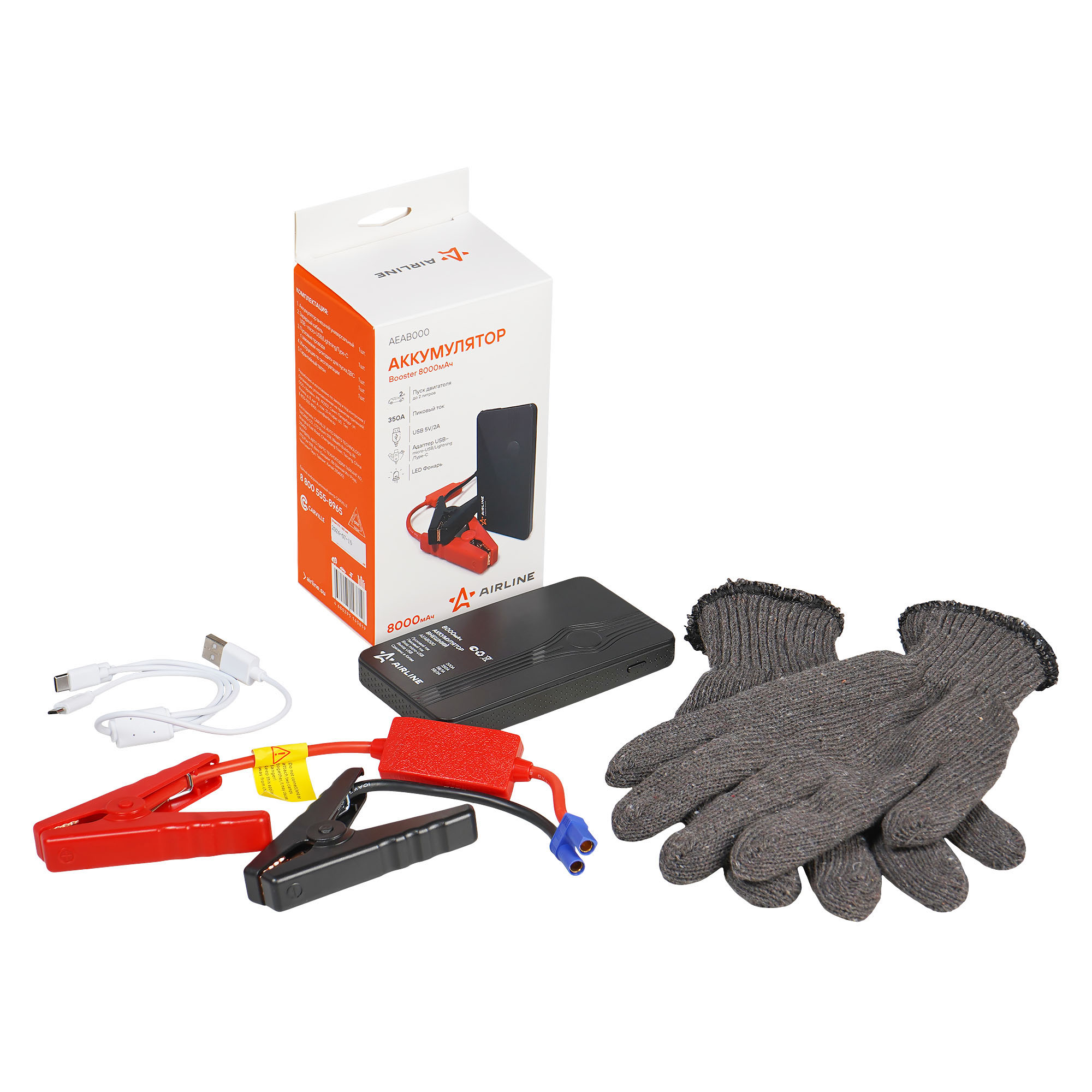В комплект входит пара трикотажных хлопчатобумажных перчаток серых. Перчатки обеспечивают комфорт и защиту рук при подключении бустера, работе с клеммами аккумулятора и выполнении других технических задач.