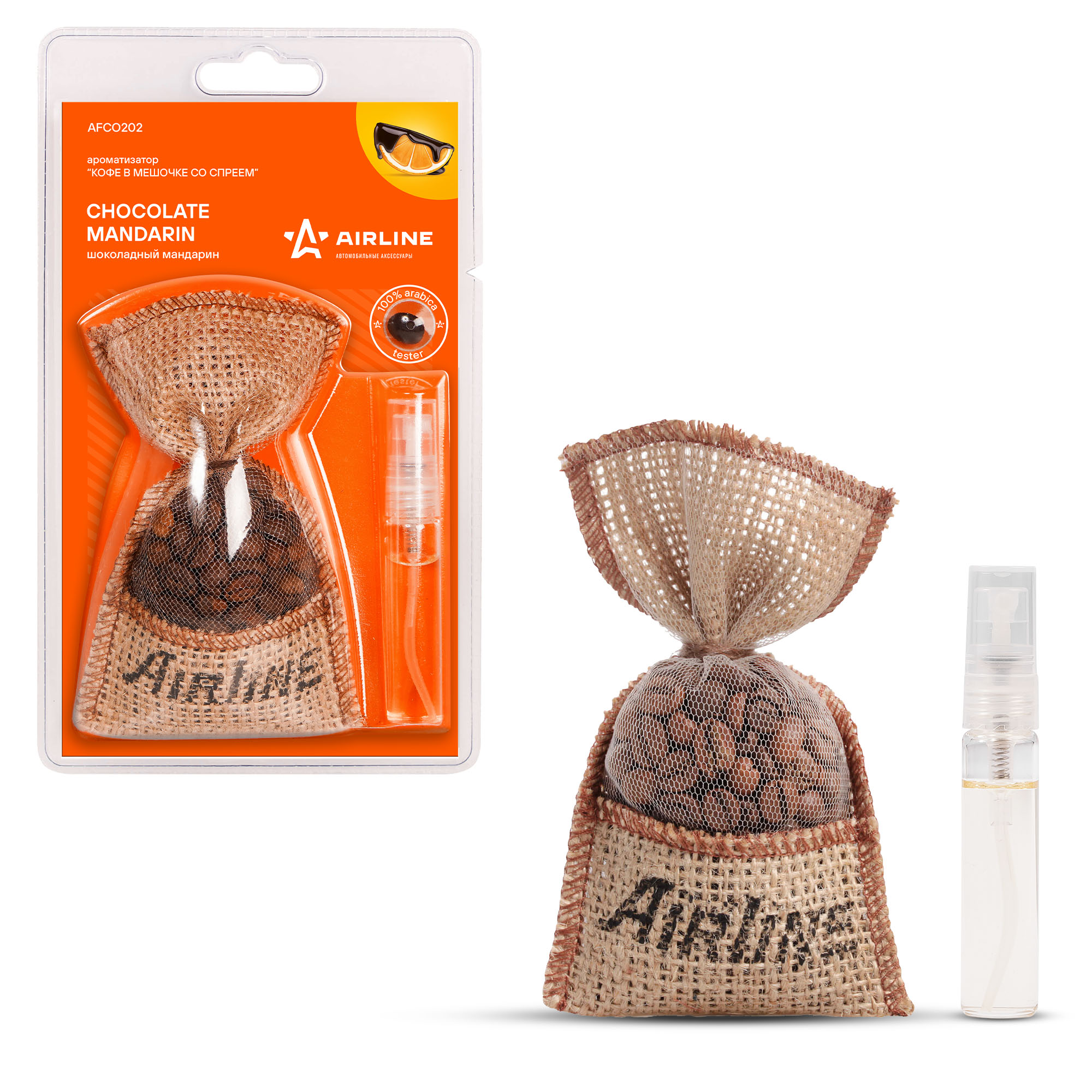 Кофе в мешочке - эффективный натуральный ароматизатор для салона авто. Приятный бодрящий аромат кофе дополненный нотками специй и натуральных компонентов создадут уютную и приятную атмосферу. Интенсивность и долговечность аромата регулируются самостоятельно с помощью спрея.