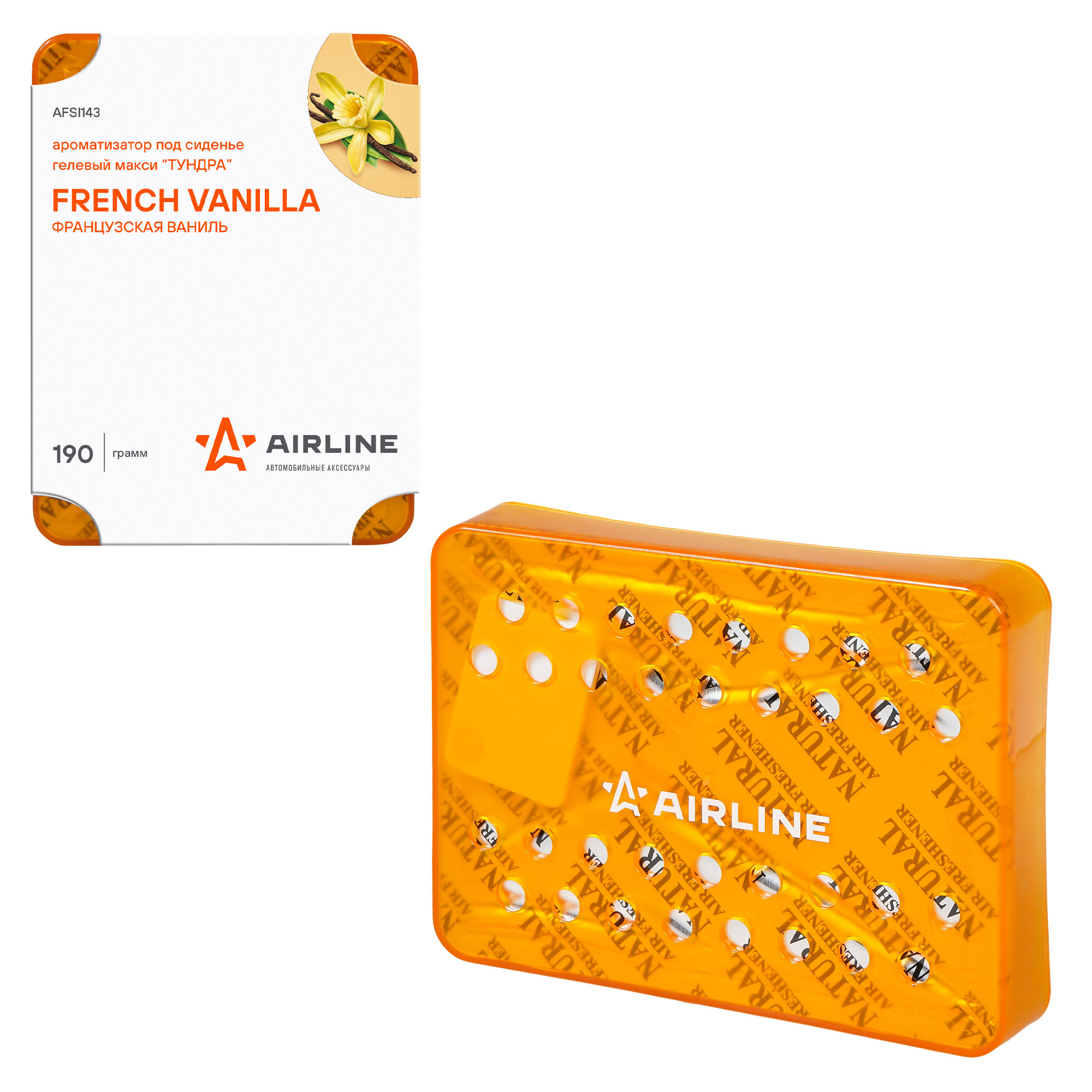 Ароматизатор под сиденье "Тундра" имеет стильный дизайн в виде компактного блока яркого цвета, с нанесенными на внешнюю сторону поверхности отверстиями. Внутри пластикового блока установлен гель в блистерной упаковке, который и является основой аромата изделия. Вес: 190 гр.