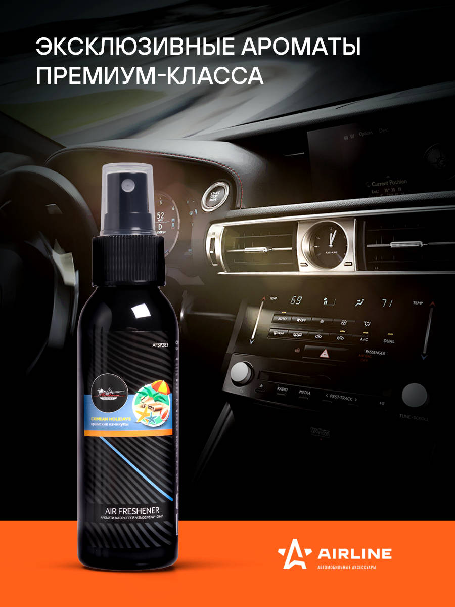 Ароматизатор спрей "Атмосфера" в пластиковом флаконе 100 мл. Удобство ароматизатора- спрея заключается в том, что интенсивность и эффективность аромата, а также расход, можно регулировать самостоятельно. Спреи от AIRLINE самые яркие, так как содержат максимально возможное количество отдушки.