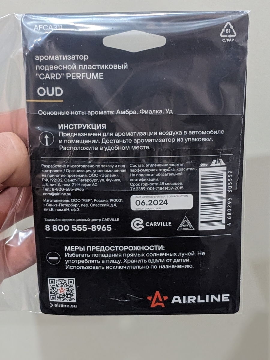 Ароматизатор "Card" от AIRLINE представляет собой эластичную пластиковую карточку, пропитанную парфюмерной композицией. Стильный лаконичный дизайн и нетривиальный аромат создадут особую атмосферу в салоне авто или помещении.