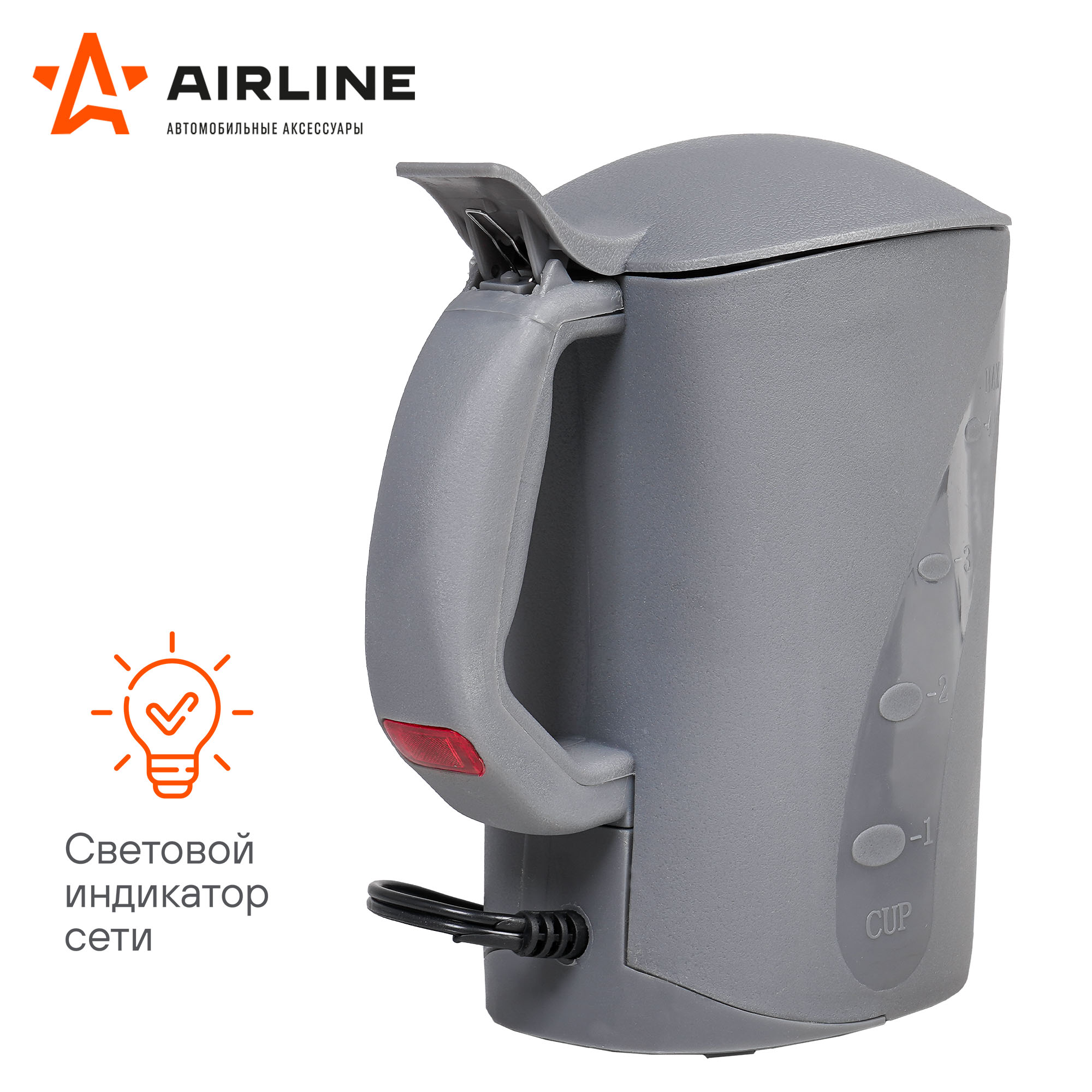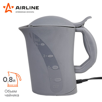 Автомобильный электрический чайник 12В, 800 мл AIRLINE позволяет нагреть воду для приготовления чая, кофе или приготовления пищи. Идеально подходит для длительных поездок на отдых или в командировку на автомобиле. Благодаря специальной подставке прибор просто и надежно фиксируется в любом удобном для водителя и пассажиров месте.