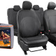Чехлы изготовлены по бокам и сзади из высококачественной гладкой экокожи, в центральной части используется экокожа триплированная поролоном с перфорацией. На спинках передних сидений расположены вместительные карманы на молнии. Передние чехлы имеют специальный крой не мешающий открытию подушек безопасности.