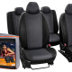 Чехлы изготовлены по бокам и сзади из искусственной кожи высокого качества черного цвета, в центральной части из автомобильного жаккарда триплированного поролоном, который по своим свойствам идентичен штатному. Жаккардовая вставка имеет рисунок «Штрих» черного цвета с серыми вкраплениями. В местах боковой поддержки применяется специализированная ткань-компаньон. На спинках передних сидений расположены вместительные карманы на молнии. Передние чехлы имеют специальный крой не мешающий открытию подушек безопасности.