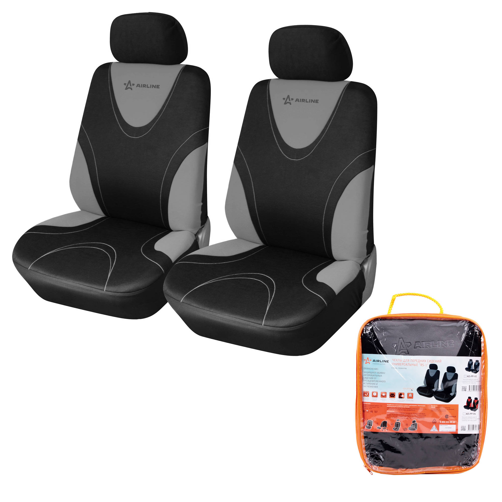 Чехлы для сидений универсал. "RS-1",передние, 2 шт.(4 предм.), полиэстер, черн./сер.