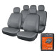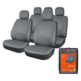 Чехлы предназначены для автомобильных сидений первого и второго ряда. Предназначены для защиты штатной обивки сидений от механических повреждений, загрязнения и выцветания, а так же преображают внешний вид салона. Чехлы имеют универсальный размер и подходят на сиденья большинства легковых автомобилей. Чехлы изготовлены в современном дизайне из высококачественной экокожи и полиэстера приятных на ощупь. Центральная часть чехлов имеет перфорацию для микропроветривания. Спинки передних сидений оснащены удобными и вместительными карманами для различных вещей.