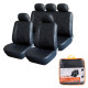 Предназначены для защиты штатной обивки сидений от механических повреждений, загрязнения и выцветания, а так же преображают внешний вид салона. Чехлы имеют универсальный размер и подходят на сиденья большинства легковых автомобилей. Модель сшита из износостойкой, высококачественной искусственной ПВХ кожи в сочетании с тянущимся гладким полиэстером, который обеспечивает хорошее прилегание к сиденьям. Чехлы имеют специальный ослабленный шов в месте расположения подушки безопасности для ее беспрепятственного открытия. Для облегчения монтажа подголовников в местах их крепления предусмотрены открывающиеся липучки.