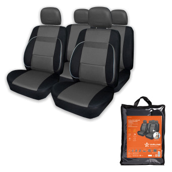 Комплект Чехлов повышенной комфортности предназначены для автомобильных сидений первого и второго ряда. Они помогут защитить обшивку сидений от механических повреждений и выцветания. Чехлы имеют универсальный размер и подходятна сиденья большинства легковых автомобилей. Передние чехлы дополнительно оснащены боковой поддержкой спины и упором для поясницы. Чехлы изготовлены из приятного на ощупь гладкого полиэстера черно-серого цвета.