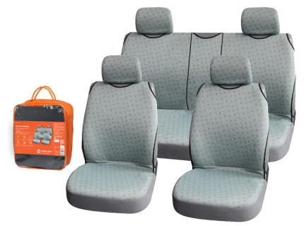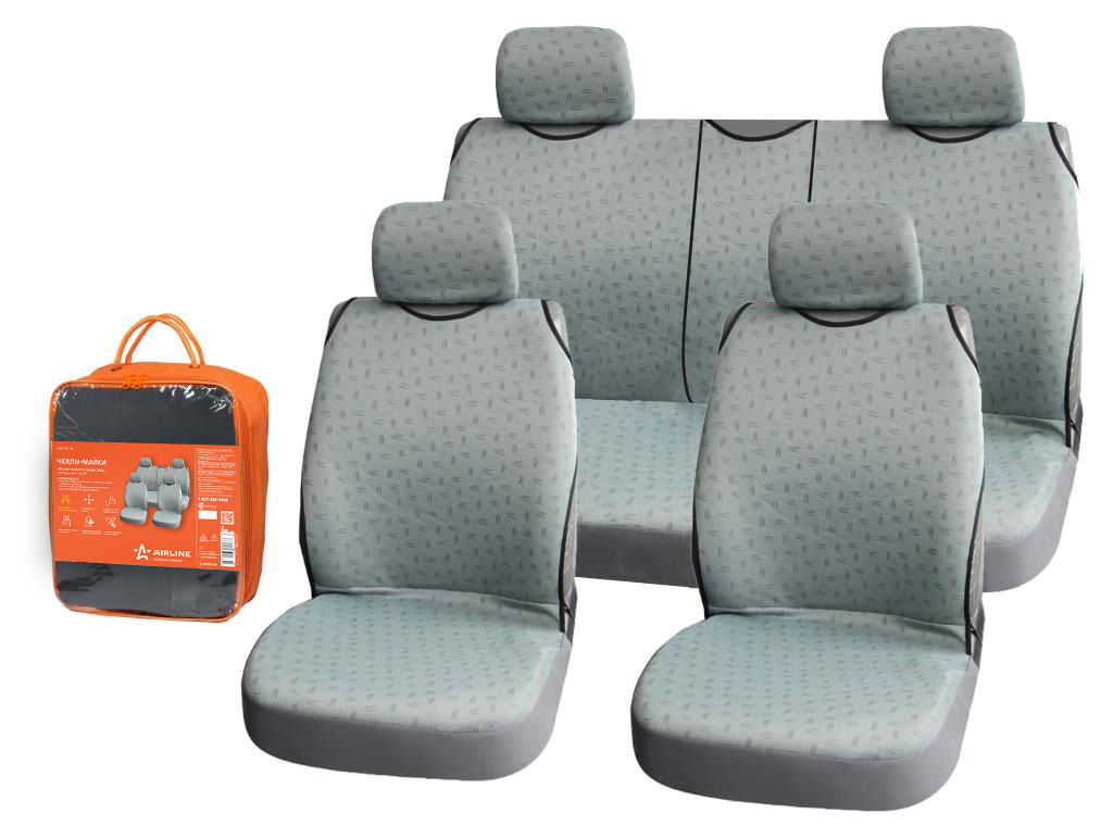 Комплект чехлов-маек Виспер – это набор чехлов для автомобилей предназначенный для переднего и заднего ряда автомобильных сидений . Комплект представлен двумя отдельными чехлами для передних сидений, а также одним общим чехлом для заднего ряда. Также в комплекте содержатся чехлы для подголовников. Жаккардовый полиэстер серого цвета чехлов плотно облегает поверхность кресел, защищая от вытирания и выцветания, под воздействием солнечных лучей. Благодаря своей форме чехлы-майки не препятствует раскрытию подушек безопасности, а также позволяют без затруднений надевать их на кресла любого типа, не прибегая к демонтажу подголовников и подлокотников. Все модели, имеют универсальную систему крепления позволяющую применять изделие на 99% существующего автопарка России.