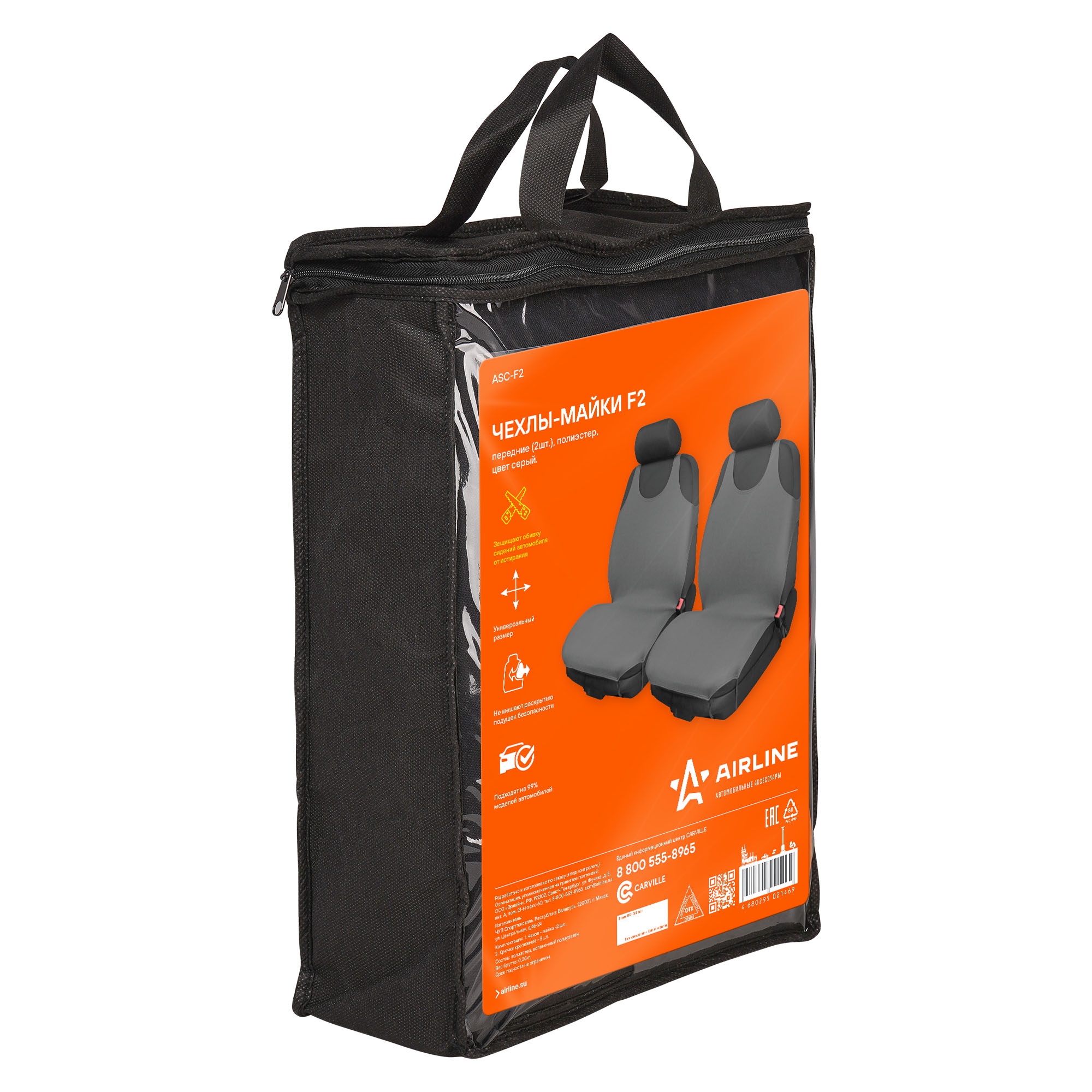 Чехлы в форме маек F-2 предназначены для передних сидений легковых автомобилей. F-2 выполнены в сером цвете и изготовлены из полиэстера. Форма майки обладает массой преимуществ для чехла, т.к. она защищает только используемую поверхность сиденья, не создает барьера для открывания подушек безопасности, а также не требует усилий при установке. Универсальный размер чехлов дает возможность применять их к большинству легковых автомобилей.