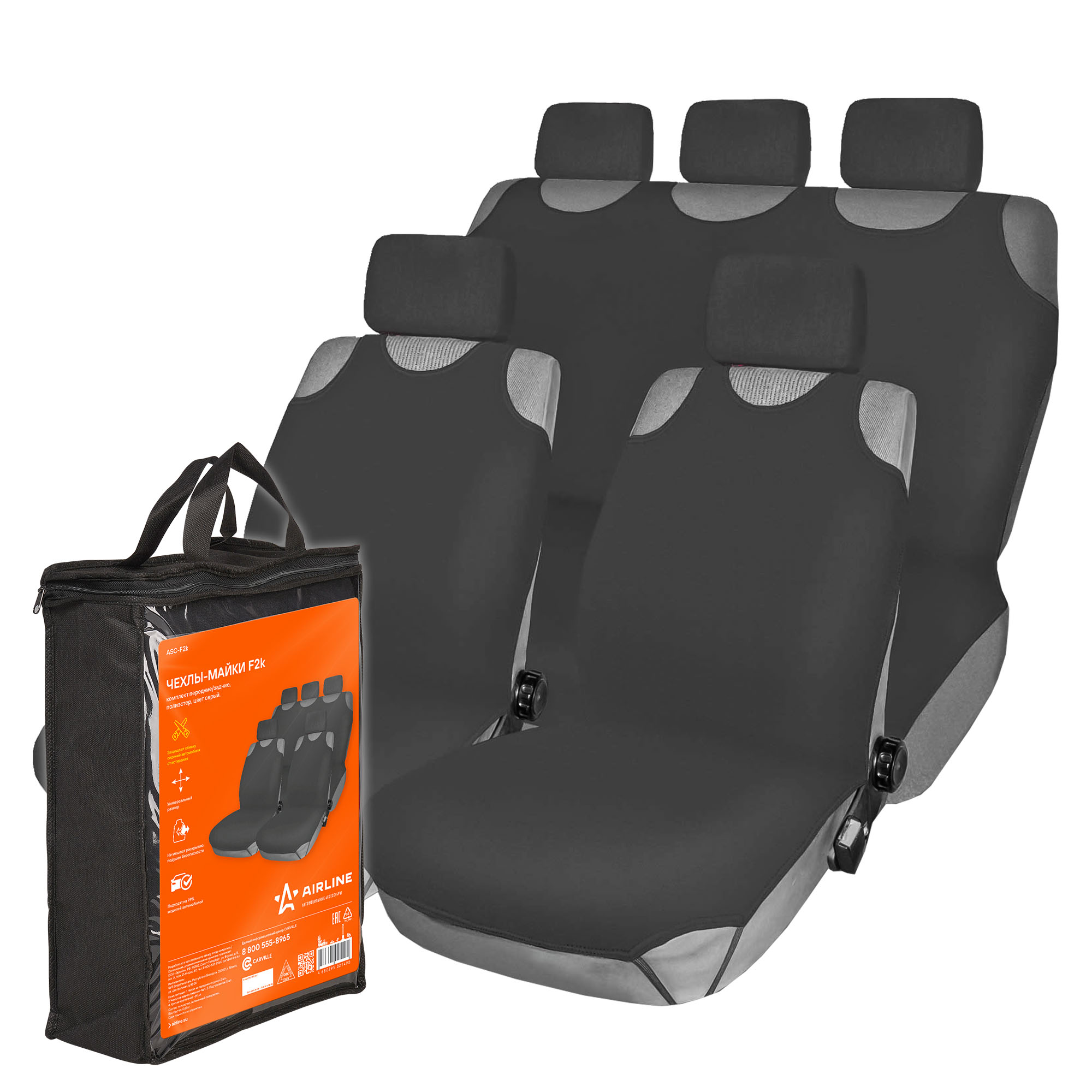Комплект чехлов-маек F-2K предназначен для установки на передние и задние сиденья автомобиля. Комплект выполнен в сером цвете. Специально разработанная форма чехлов позволяет закрывать только наиболее часто используемую поверхность сидений автомобиля. Благодаря особой форме, чехлы не препятствуют работе подушек безопасности, а также легко устанавливаются на сиденья машины.
