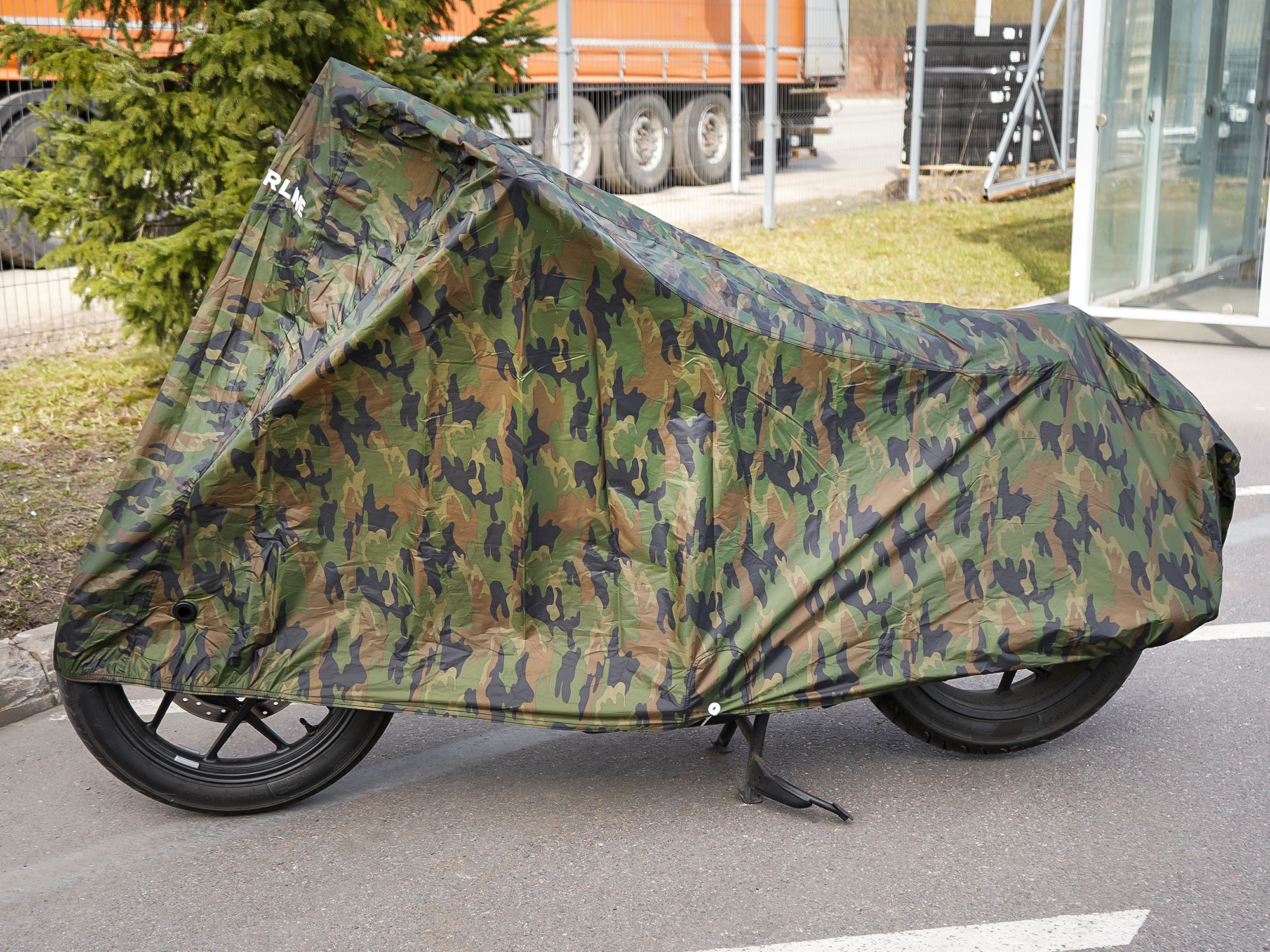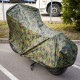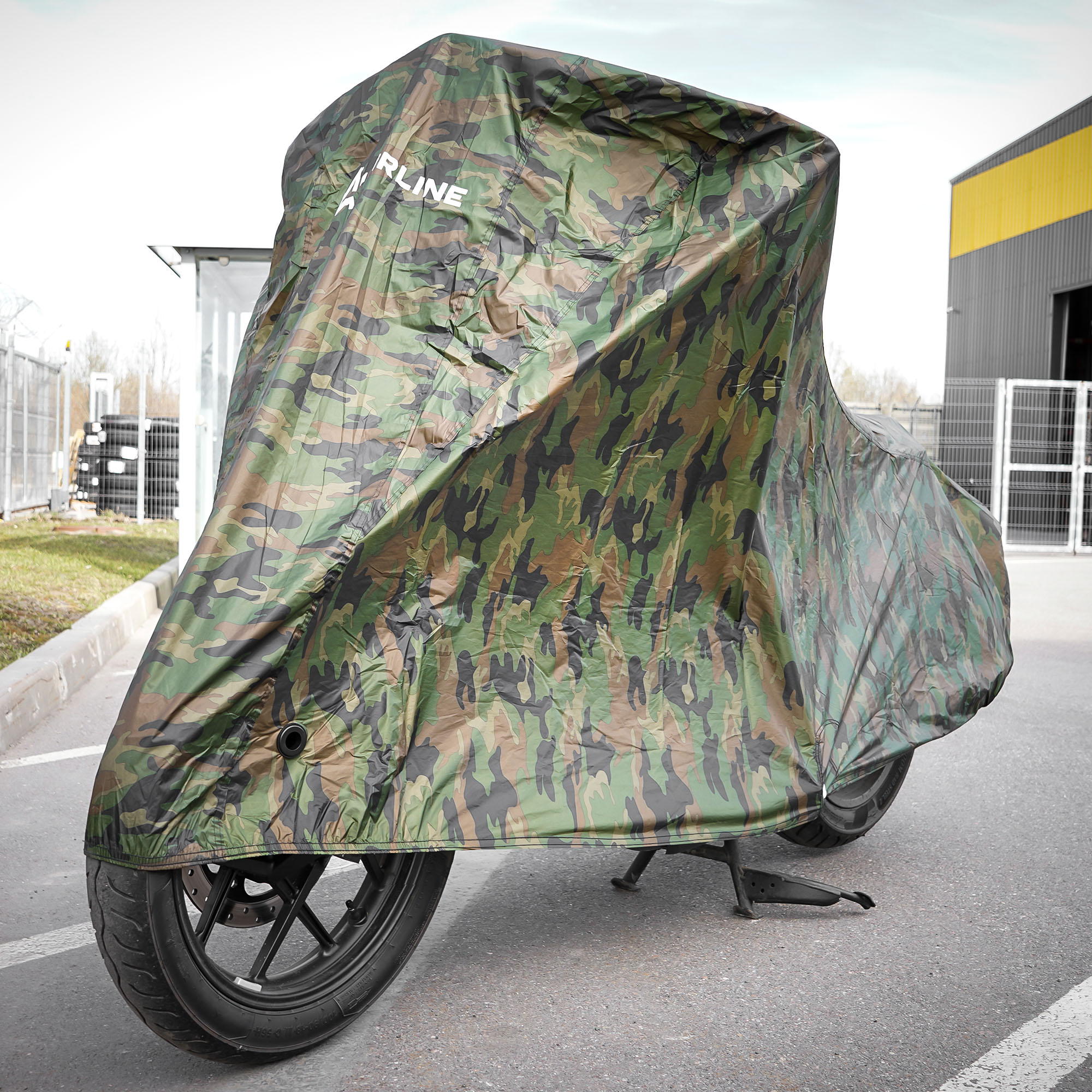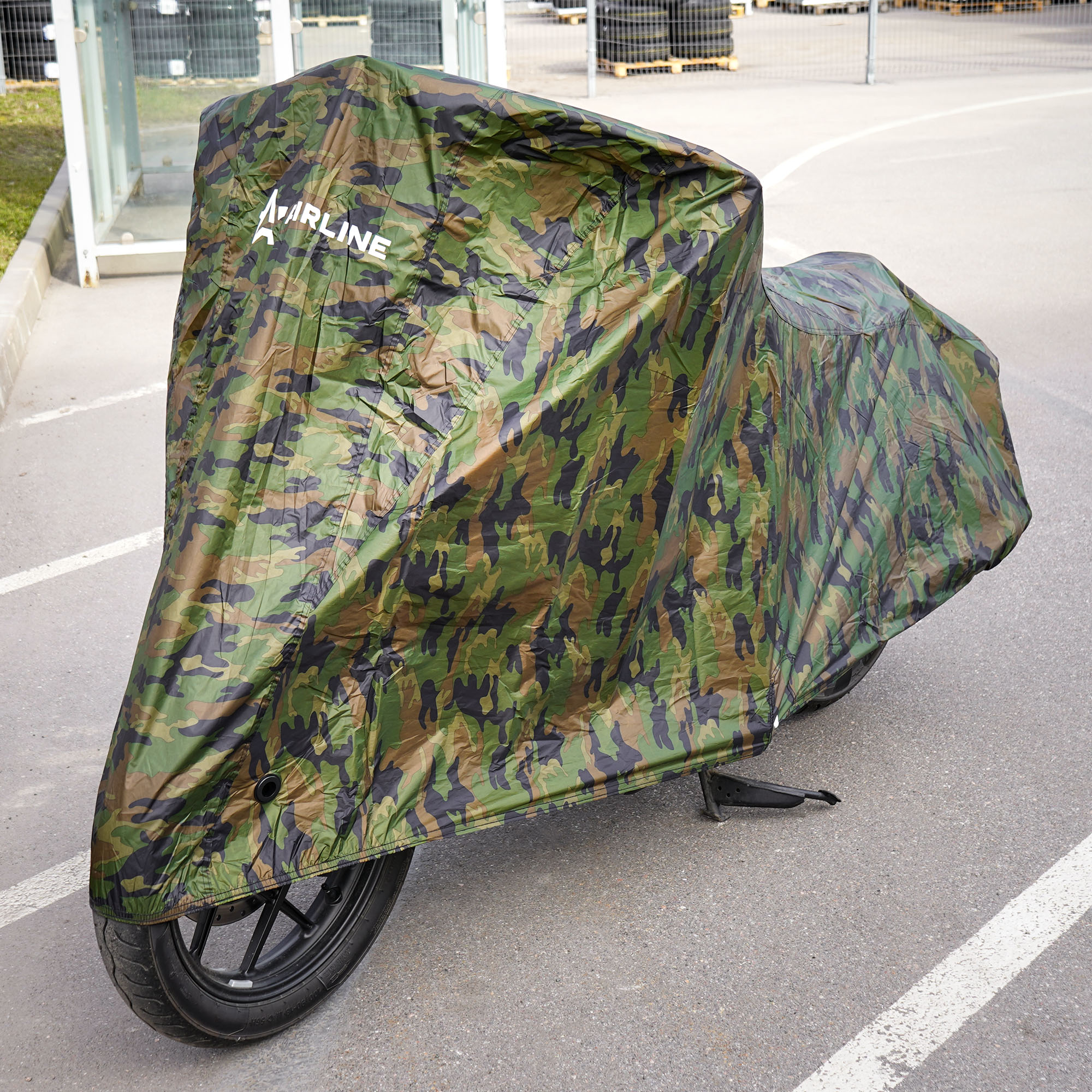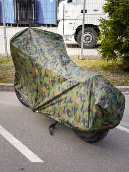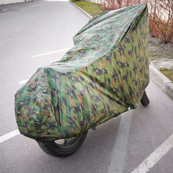 Защитный чехол-тент от компании AIRLINE разработан специально для мотоциклов. Данная модель защитного чехла имеет размер L и комуфлированную расцветку. Среди преимуществ чехла-тента многочисленные защитные свойства, которые помогают сохранить внешний вид транспортного средства, беречь его от повреждений и снизить его заметность в припаркованом состоянии. В области переднего колеса сделаны специальные люверсы для крепления блокиратора-замка.