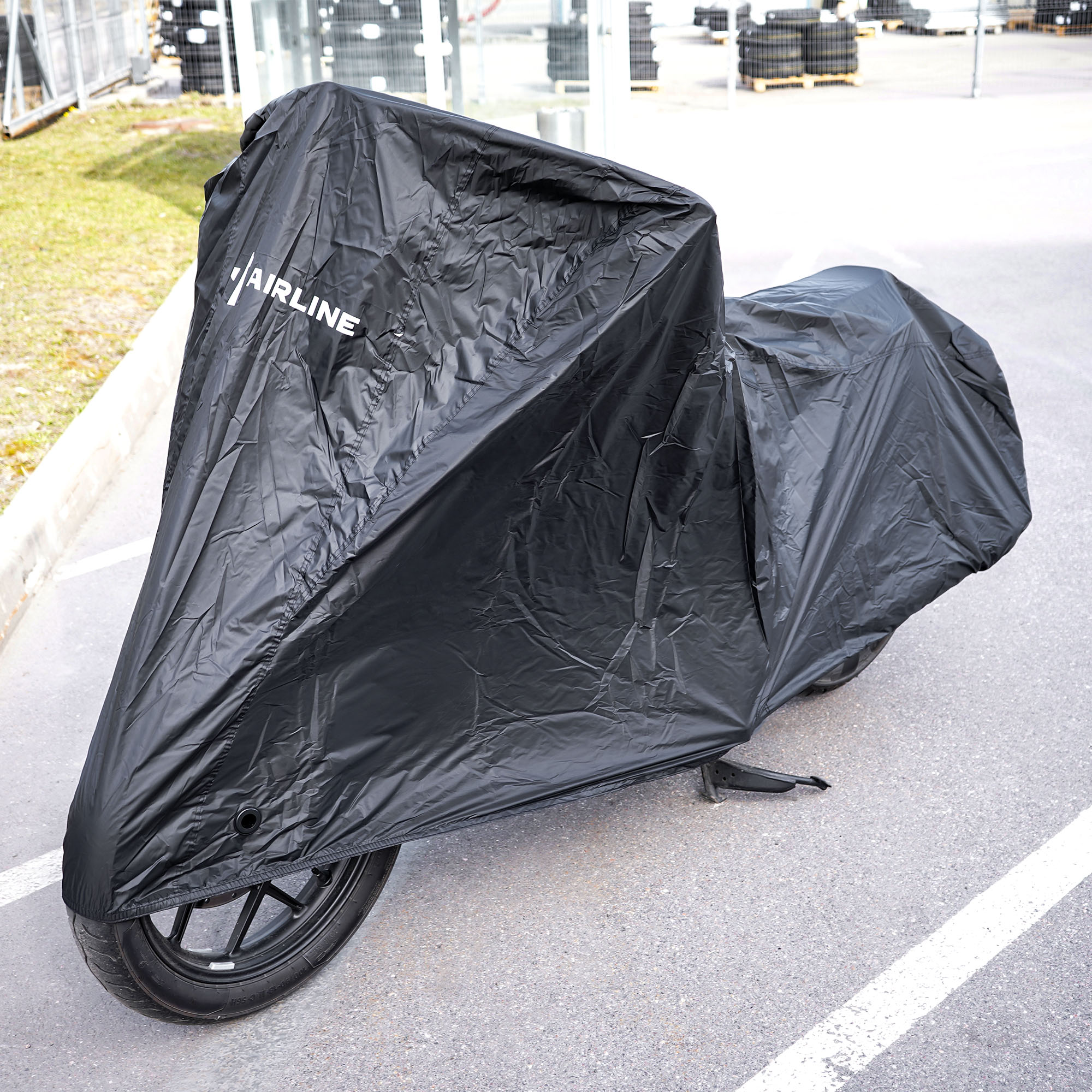 Защитный чехол-тент от компании AIRLINE разработан специально для мотоциклов. Данная модель защитного чехла имеет размер L и черную расцветку. Среди преимуществ чехла-тента многочисленные защитные свойства, которые помогают сохранить внешний вид транспортного средства и уберечь его от повреждений. В области переднего колеса сделаны специальные люверсы для крепления блокиратора-замка.