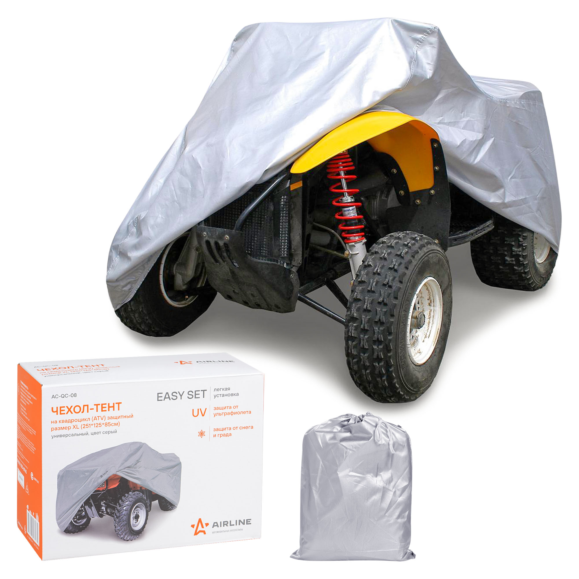 Чехол - тент на квадроцикл изготовлен из водонепроницаемого 100% полиэстера и применяются для защиты приборов и лакокрасочного покрытия квадроцикла от атмосферных осадков, ветра, пыли и ультрафиолета. В комплекте имеется сумка-чехол для удобного хранения.