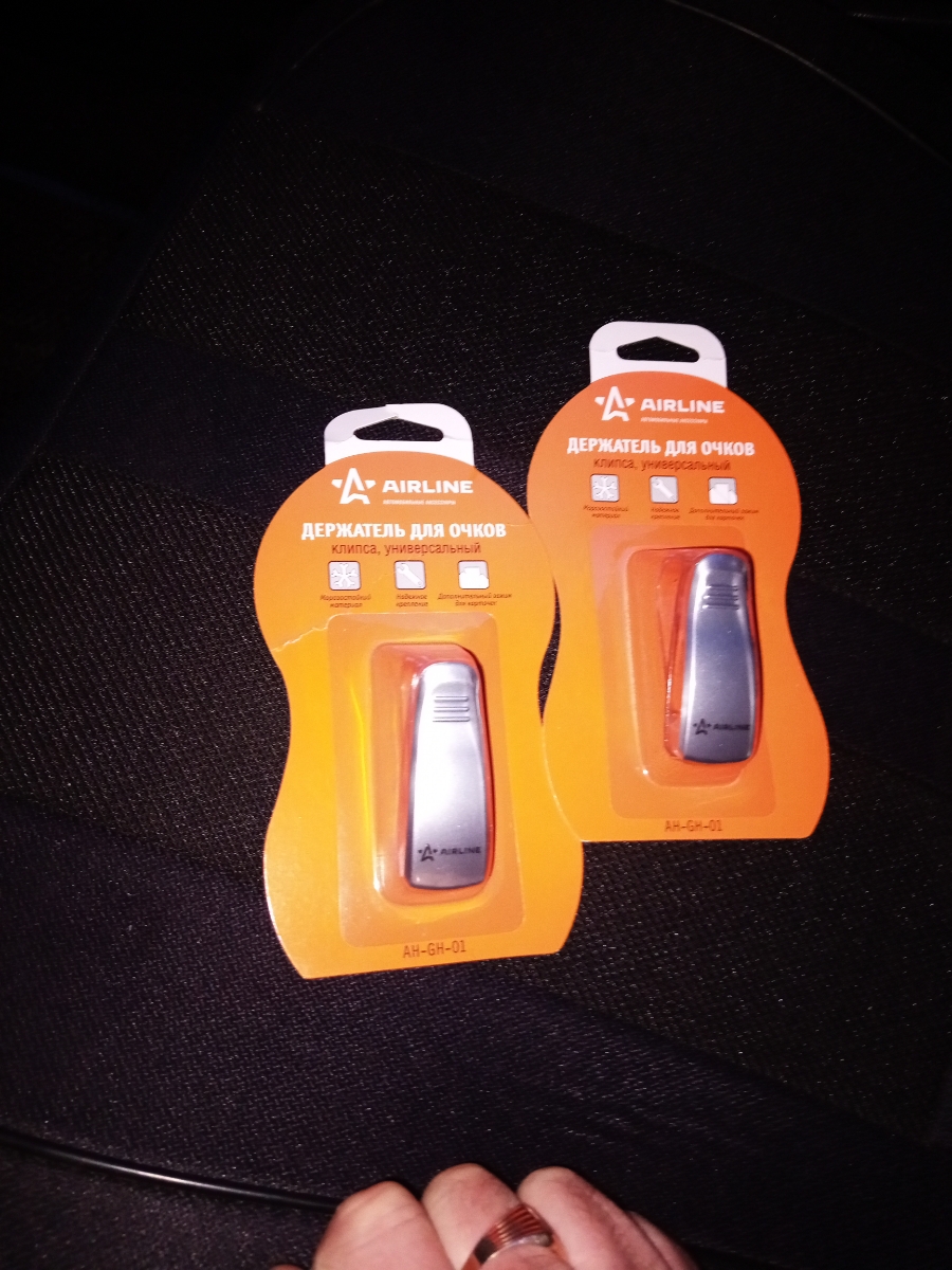 Держатели для очков, которые являются незаменимым атрибутом в салоне для водителей пользующимися во время вождения очками. Водители, чей автомобиль не оснащен штатным очечником, сталкиваются с проблемой хранения очков – их стекла повреждаются, образуются мелкие царапины, оправа ломается или очки просто невозможно найти, когда они так нужны. На помощь приходит специальные держатели-прищепки для очков, с их помощью можно закрепить очки на солнцезащитный козырек или панель автомобиля. Отличительной чертой Держателей AIRLINE- являются прижимные подушечки из пористой резины, обладающие лучшими свойствами антискальжения по сравнению с аналогичными поролоновыми зажимами.