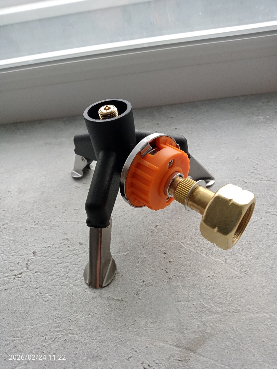 Применяется в качестве переходника к газовой горелке с цанговым креплением для совместимости с газовым баллоном имеющим резьбовой тип соединения.