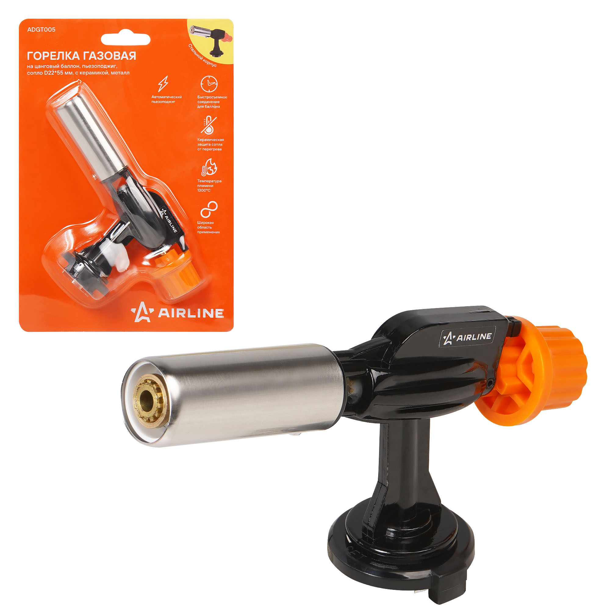 Представляет собой насадку с соплом на газовый баллон. Применяется для розжига костра, разогрева трубопровода, нагрева предметов и проведения различных ремонтных работ. Горелка-насадка используется совместно со стандартным газовым баллоном цангового типа, который в комплект поставки не входит.Поджиг осуществляется пьезоэлементом.