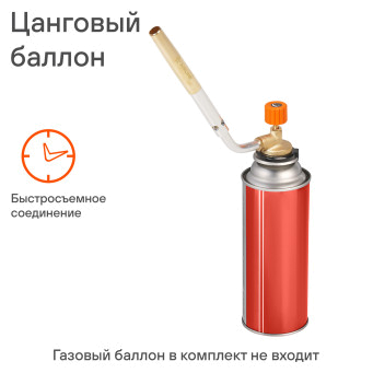 представляет собой насадку с соплом на газовый баллон. Применяется для розжига костра, разогрева трубопровода, нагрева предметов и проведения различных ремонтных работ, например пайки. Конструкция горелки позволяет вращать сопло на 360грудусов, что является хорошим преимущество перед аналогичными моделями. Оснащена надежным латунным клапаном регулировки газа. Горелка-насадка используется совместно со стандартным газовым баллоном 220г. цангового типа, который в комплект поставки не входит. Поджиг осуществляется вручную посредством зажигалки или спичек.