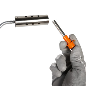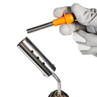 Представляет собой мелическое сопло с пластиковым крпусом. Применяется для зажигания газа в горелках с помощью искры образованной пьезоэлементом. Поджиг осуществляется нажатием кнопки на тыльной стороне за счет этого срабатывает пьезоэлемент образуя искру на кончике сопла.