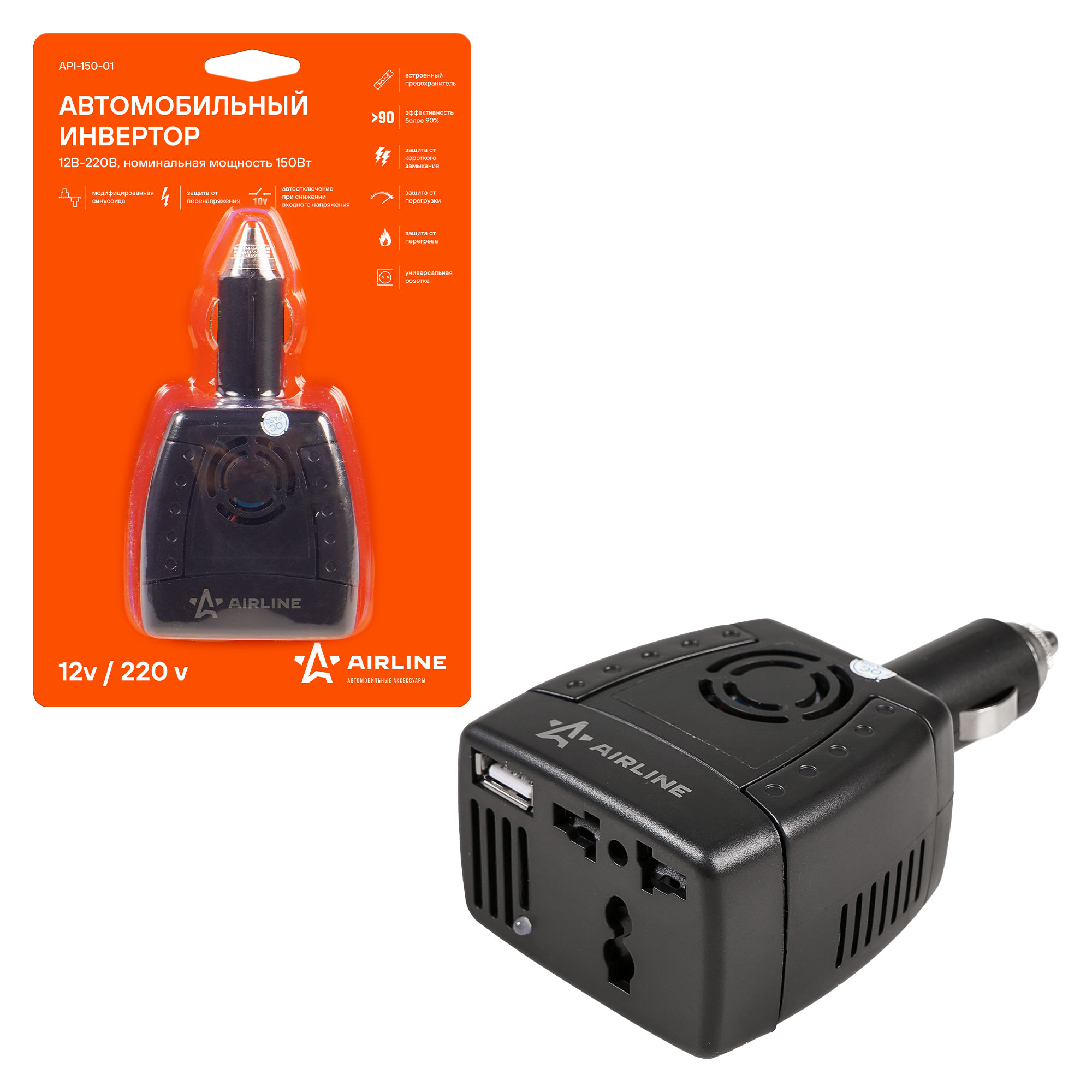 Автомобильные преобразователи напряжения (инверторы) позволяют получить переменное напряжение 220В – 50Гц от аккумулятора автомобиля. Инверторы предназначены для питания устройств с номинальным напряжением 220 вольт. В инверторы встроено гнездо USB 5В для питания и зарядки мобильных устройств. Устройства имеют защиты от короткого замыкания, перегрева, бросков входного напряжения. После устранения причины включения защиты инвертор автоматически восстанавливает свою работу. Если в автомобиле необходима настоящая розетка 220В, то инвертор станет незаменимым дополнением. Подключаясь к розетке прикуривателя, он инвертирует автомобильные 12В в 220В, обеспечивая автовладельца возможностью подключения необходимых в дороге или на выезде, вдалеке от дома, приборов, например, ноутбука и телевизора, электроинструментов и зарядки. Это делает автомобиль более комфортным, особенно в случае внепланового отключения электроэнергии дома, на даче или на отдыхе за городом.
