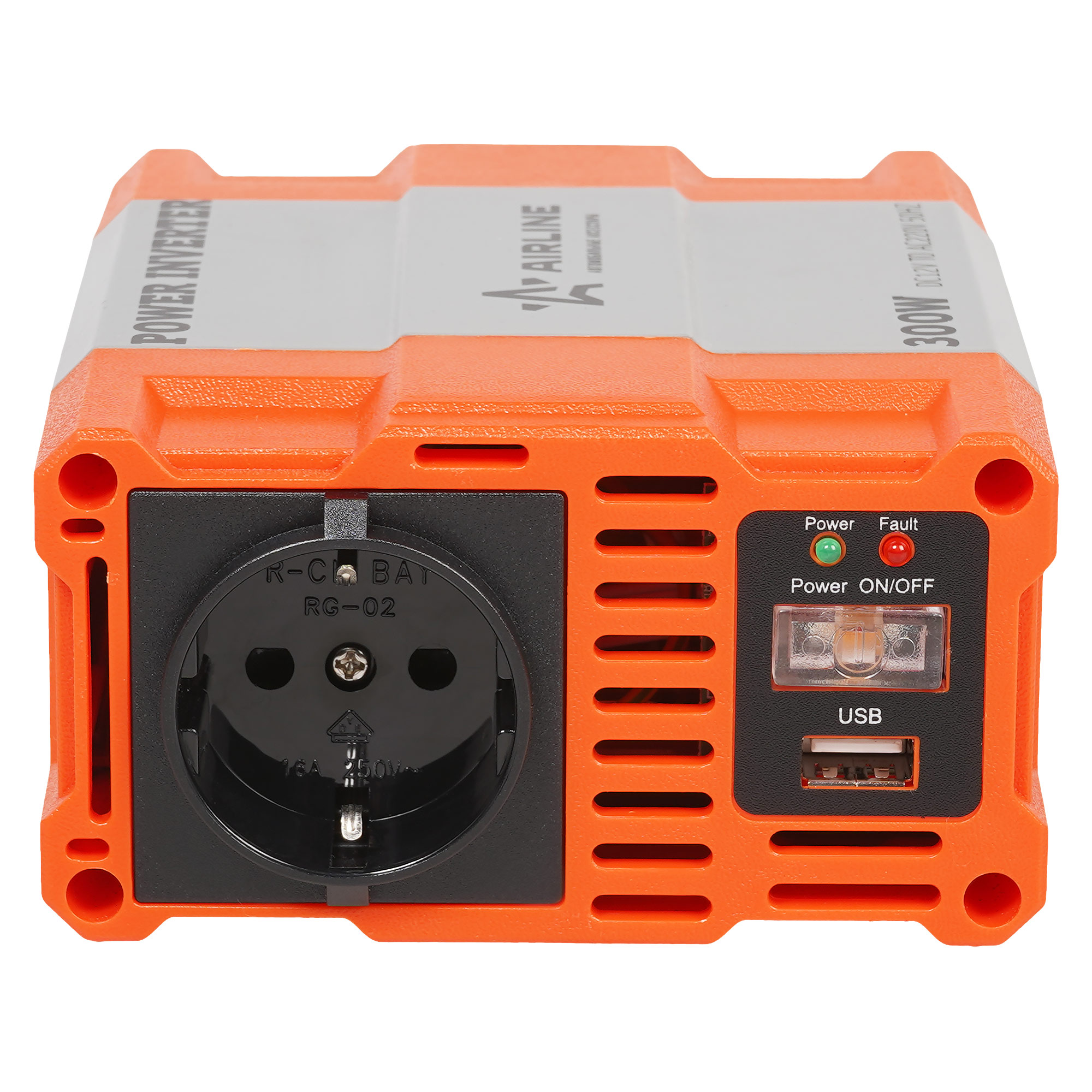Автомобильные преобразователи напряжения (инверторы) позволяют получить переменное напряжение 220В – 50Гц от аккумулятора автомобиля. Инверторы предназначены для питания устройств с номинальным напряжением 220 вольт. В инверторы встроено гнездо USB 5В для питания и зарядки мобильных устройств. Устройства имеют защиты от короткого замыкания, перегрева, бросков входного напряжения. После устранения причины включения защиты инвертор автоматически восстанавливает свою работу. Если в автомобиле необходима настоящая розетка 220В, то инвертор станет незаменимым дополнением. Подключаясь к аккумулятору, он инвертирует автомобильные 12В в 220В, обеспечивая автовладельца возможностью подключения необходимых в дороге или на выезде, вдалеке от дома, приборов, например, ноутбука и телевизора, электроинструментов и зарядки. Это делает автомобиль более комфортным, особенно в случае внепланового отключения электроэнергии дома, на даче или на отдыхе за городом.