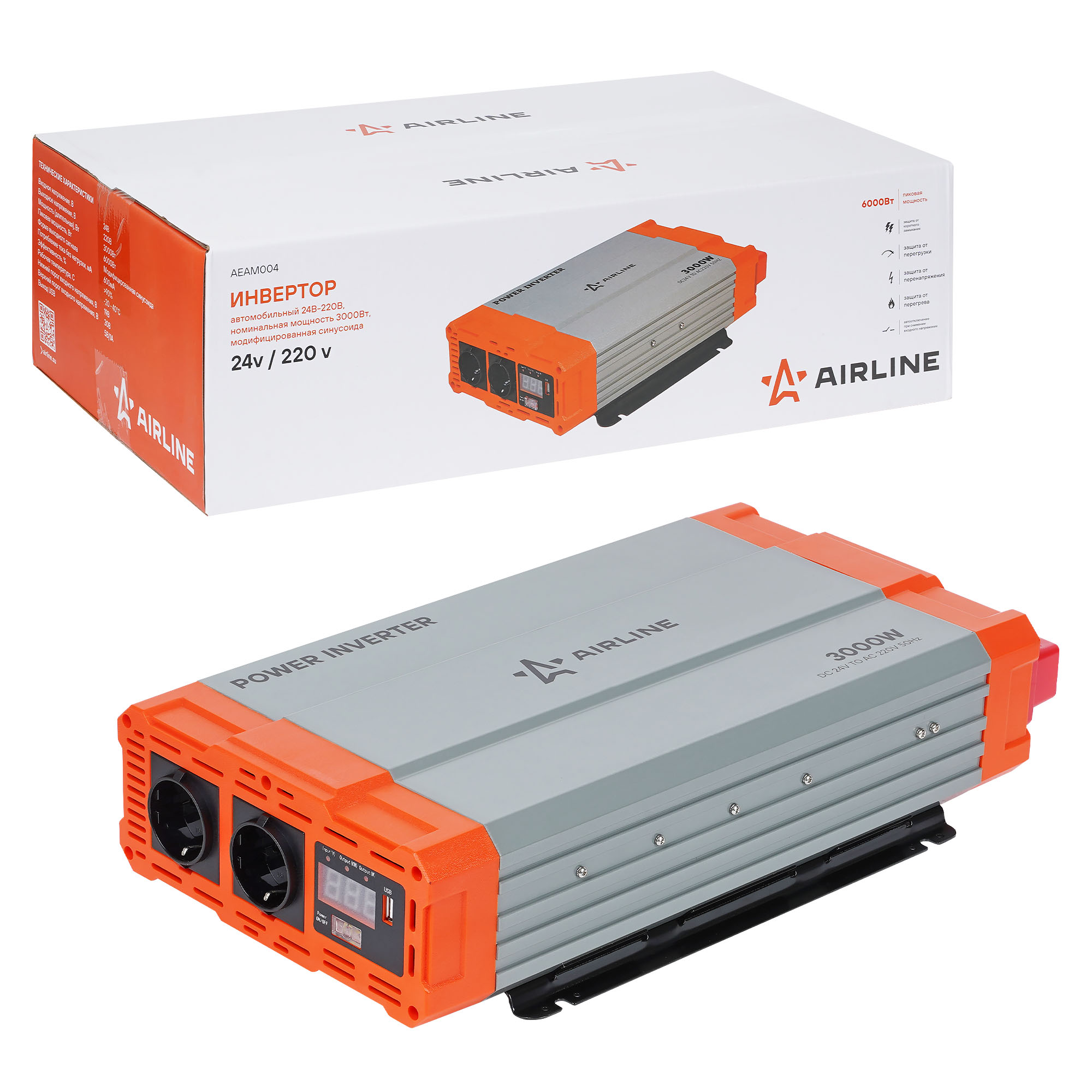 Автомобильный преобразователь напряжения (инвертор) позволяет получить переменное напряжение 220В – 50Гц от аккумулятора автомобиля. Инвертор предназначены для питания устройств с номинальным напряжением 220 вольт. В инвертор встроено гнездо USB 5В для питания и зарядки мобильных устройств. Устройство имеет защиту от короткого замыкания, перегрева, скачков входного напряжения. Если в автомобиле необходима настоящая розетка 220В, то инвертор станет незаменимым дополнением. Подключаясь к аккумулятору, он инвертирует автомобильные 24В в 220В, обеспечивая автовладельца возможностью подключения необходимых в дороге или на выезде, вдалеке от дома, приборов, например, ноутбука и телевизора, электроинструментов и зарядки. Это делает автомобиль более комфортным, особенно в случае внепланового отключения электроэнергии дома, на даче или на отдыхе за городом.