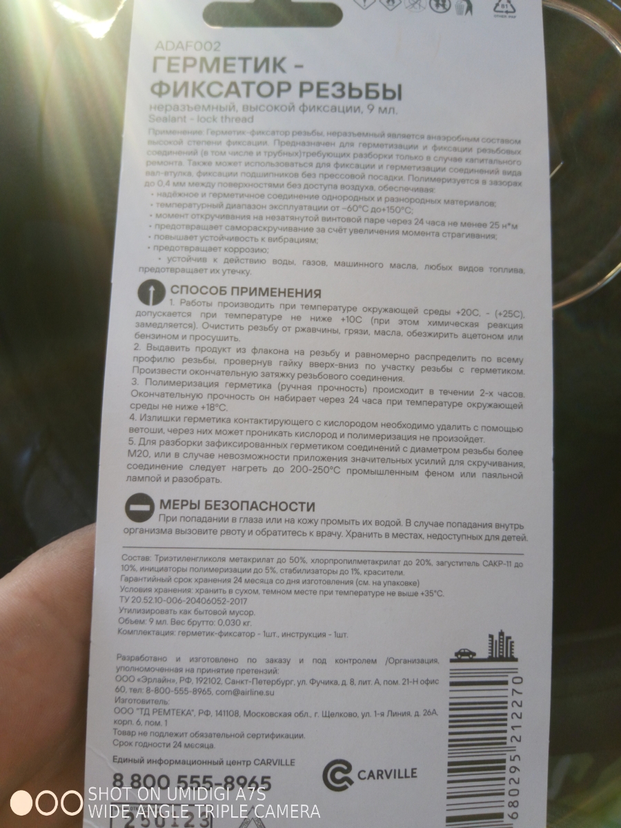 Герметик-фиксатор резьбы, неразъемный является анаэробным составом высокой степени фиксации. Предназначен для герметизации и фиксации резьбовых соединений (в том числе и трубных)требующих разборки только в случае капитального ремонта. Также может использоваться для фиксации и герметизации соединений вида вал-втулка, фиксации подшипников без прессовой посадки. Полимеризуется в зазорах до 0,4 мм между поверхностями без доступа воздуха, обеспечивая: надёжное и герметичное соединение; предотвращает самораскручивание за счёт увеличения момента страгивания; повышает устойчивость к вибрациям; предотвращает коррозию;устойчив к действию воды, газов, машинного масла, любых видов топлива, предотвращает их утечку.