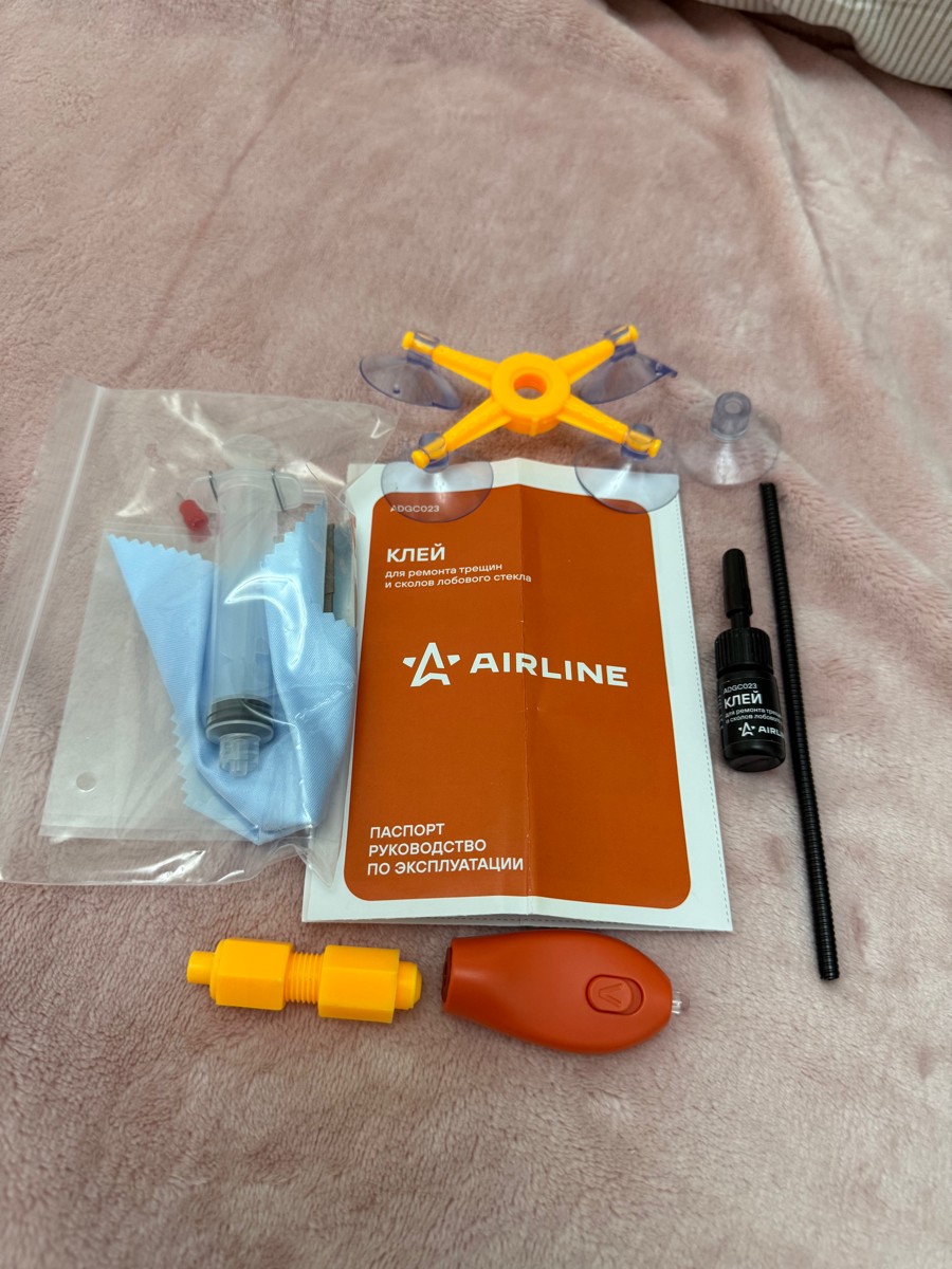 Достоинства: Рабочий набор, трещину на стекле залил, меньше бросается в глаза. Удобно пользоваться, подробная инстркуция.