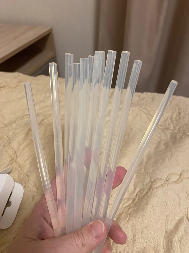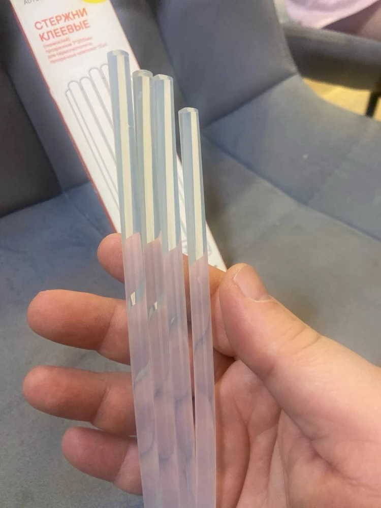 Достоинства: Стержни клеевые для клеевого пистолета, хорошего качества, клеят хорошо, ничего не отваливается, удобно пользоваться