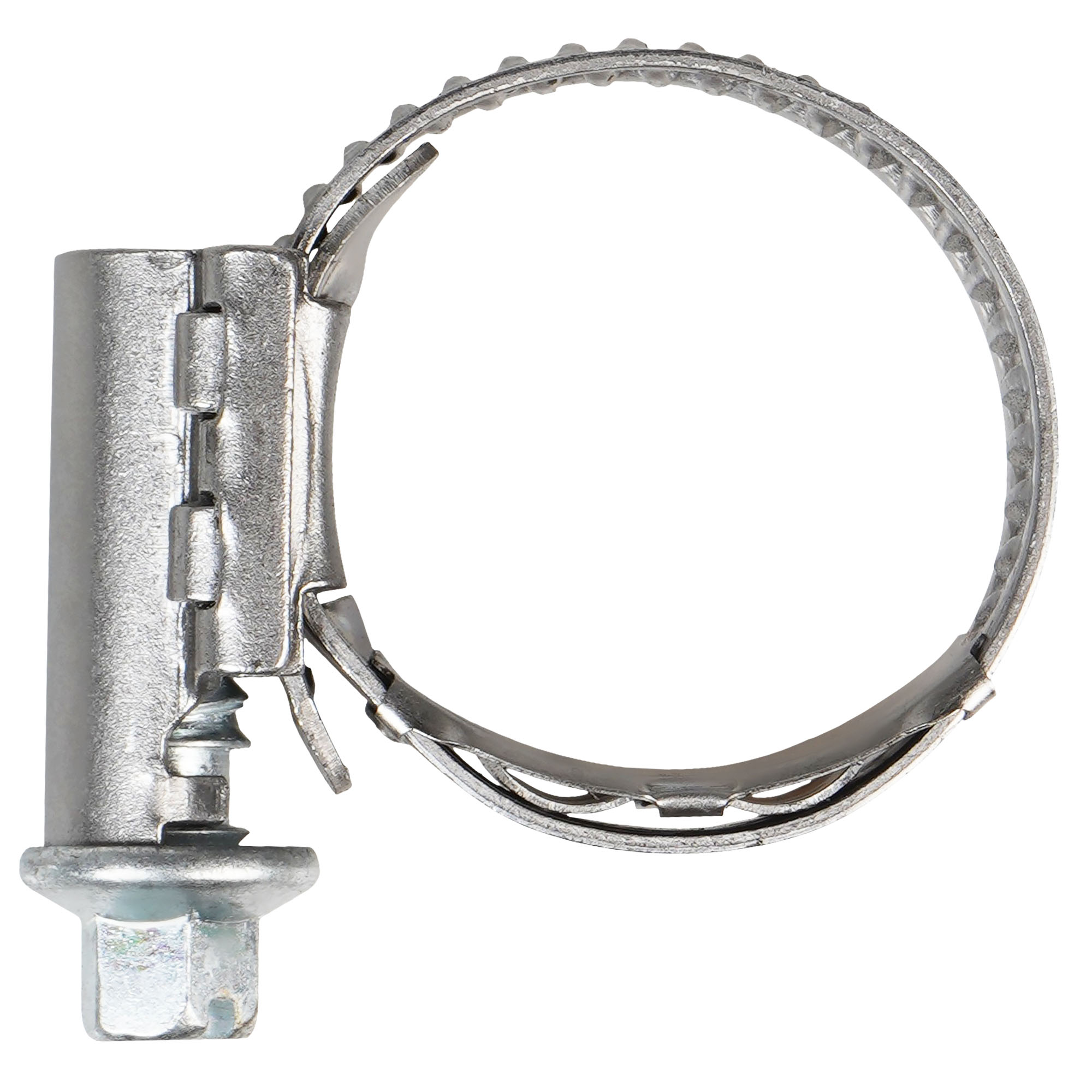 Соединительный элемент, применяемый для крепления и герметизации соединения шлангов, патрубков и других жёстких и гибких трубопроводов. По диаметру он может быть разным. Диаметр обязательно соотносится с размером диаметра трубы. Хомуты такого вида очень сложно разорвать или растянуть они устойчивы к любым механическим воздействиям, поэтому их часто используют при высоких нагрузках. Такой хомут можно использовать несколько раз при этом соединение не теряет своей герметичности. Хомуты состоят из ленты с зубчатой дорожкой, корпуса и специального винта для затяжки хомута. На ленте нет сквозных прорезей, что гарантирует целостность поверхности патрубка. Главной особенностью считается оснащение хомута пружиной в виде волны, которая автоматически натягивается для обеспечения оптимального радиального усилия зажима(самоподтягивание). Данный тип хомута является идеальным выбором для применений при экстремальных перепадах температуры (например, при наддувочном воздухе в турбине), при экстремально низких температурах или для удержания шлангов с тенденцией к «ползучести» так называемой релаксации (ослабления) шланга.