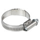 Соединительный элемент, применяемый для крепления и герметизации соединения шлангов, патрубков и других жёстких и гибких трубопроводов. По диаметру он может быть разным. Диаметр обязательно соотносится с размером диаметра трубы. Хомуты такого вида очень сложно разорвать или растянуть они устойчивы к любым механическим воздействиям, поэтому их часто используют при высоких нагрузках. Такой хомут можно использовать несколько раз при этом соединение не теряет своей герметичности. Хомуты состоят из ленты с зубчатой дорожкой, корпуса и специального винта для затяжки хомута. На ленте нет сквозных прорезей, что гарантирует целостность поверхности патрубка. Главной особенностью считается оснащение хомута пружиной в виде волны, которая автоматически натягивается для обеспечения оптимального радиального усилия зажима(самоподтягивание). Данный тип хомута является идеальным выбором для применений при экстремальных перепадах температуры (например, при наддувочном воздухе в турбине), при экстремально низких температурах или для удержания шлангов с тенденцией к «ползучести» так называемой релаксации (ослабления) шланга.