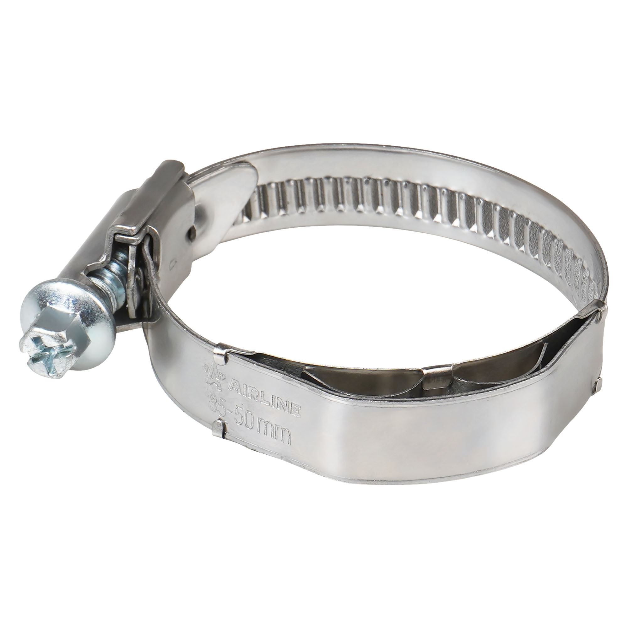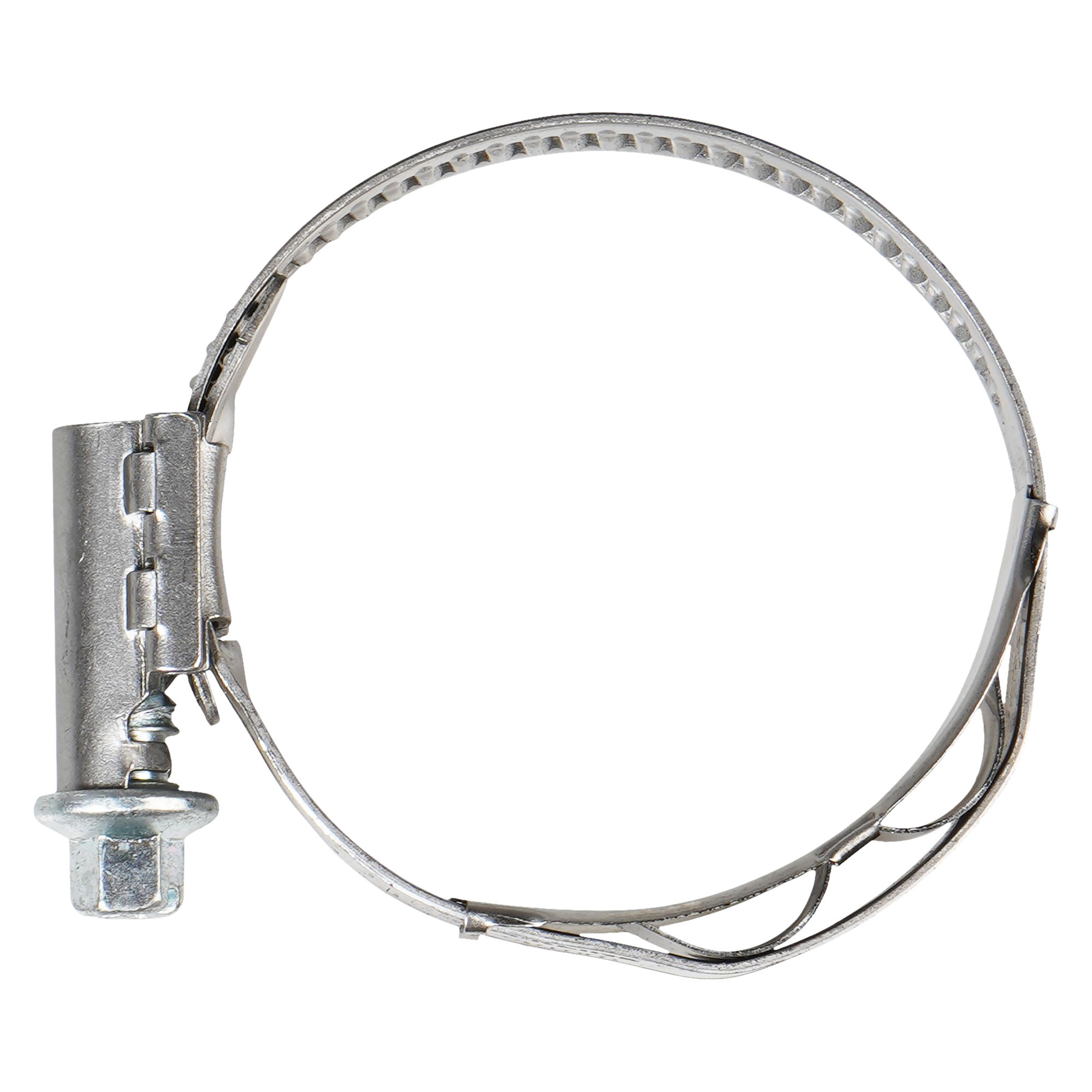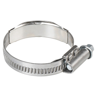 Соединительный элемент, применяемый для крепления и герметизации соединения шлангов, патрубков и других жёстких и гибких трубопроводов. По диаметру он может быть разным. Диаметр обязательно соотносится с размером диаметра трубы. Хомуты такого вида очень сложно разорвать или растянуть они устойчивы к любым механическим воздействиям, поэтому их часто используют при высоких нагрузках. Такой хомут можно использовать несколько раз при этом соединение не теряет своей герметичности. Хомуты состоят из ленты с зубчатой дорожкой, корпуса и специального винта для затяжки хомута. На ленте нет сквозных прорезей, что гарантирует целостность поверхности патрубка. Главной особенностью считается оснащение хомута пружиной в виде волны, которая автоматически натягивается для обеспечения оптимального радиального усилия зажима(самоподтягивание). Данный тип хомута является идеальным выбором для применений при экстремальных перепадах температуры (например, при наддувочном воздухе в турбине), при экстремально низких температурах или для удержания шлангов с тенденцией к «ползучести» так называемой релаксации (ослабления) шланга.