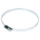 Соединительный элемент, применяемый для крепления и герметизации соединения шлангов, патрубков и других жёстких и гибких трубопроводов. По диаметру он может быть разным. Диаметр обязательно соотносится с размером диаметра трубы. Хомуты такого вида очень сложно разорвать или растянуть они устойчивы к любым механическим воздействиям, поэтому их часто используют при высоких нагрузках. Такой хомут можно использовать несколько раз при этом соединение не теряет своей герметичности. Хомуты состоят из ленты с зубчатой дорожкой, корпуса и специального винта для затяжки хомута. Детали имеют цинковое покрытие. На ленте нет сквозных прорезей, что гарантирует целостность поверхности патрубка.