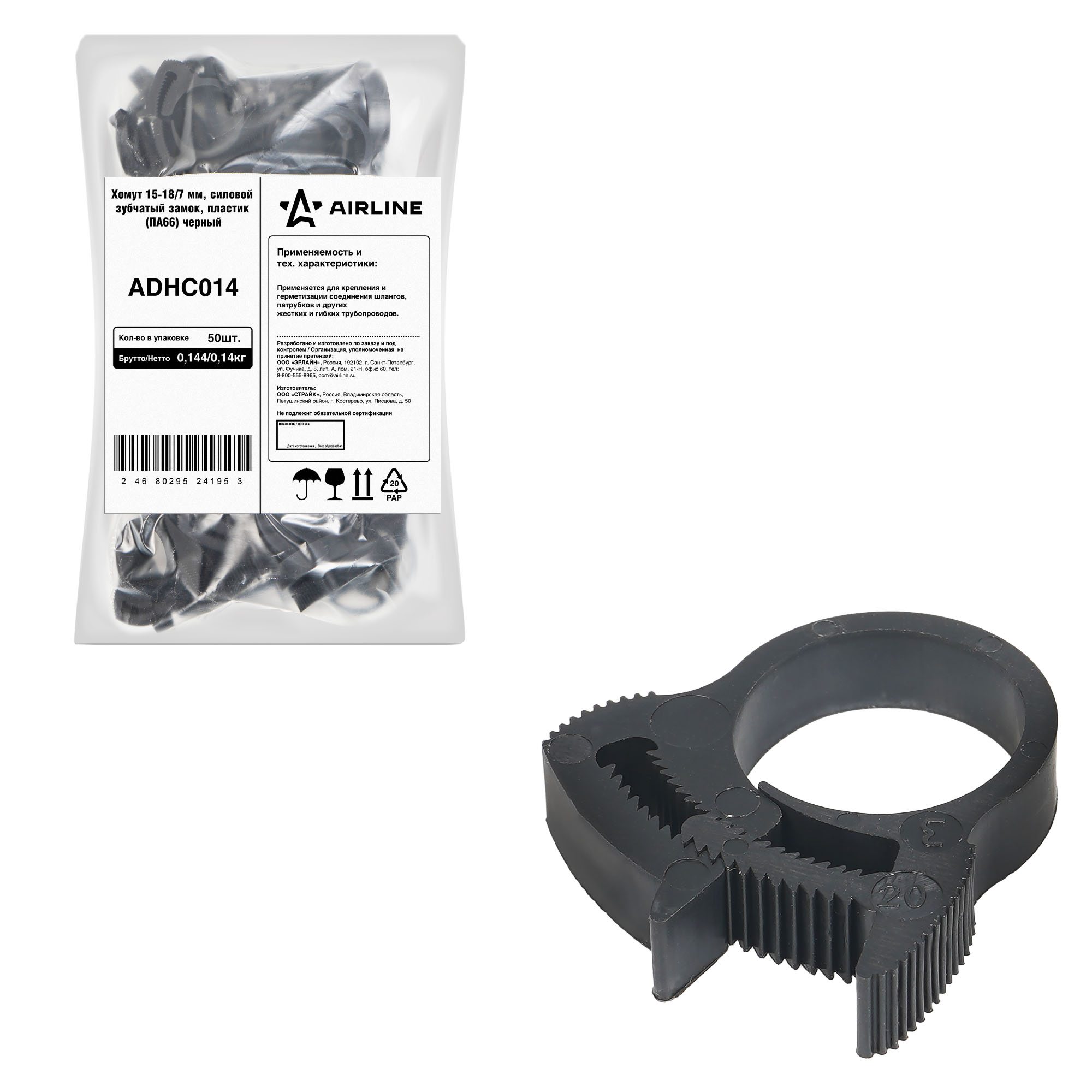 Хомут 15-18/7 мм, силовой зубчатый замок, пластик (ПА66) черный