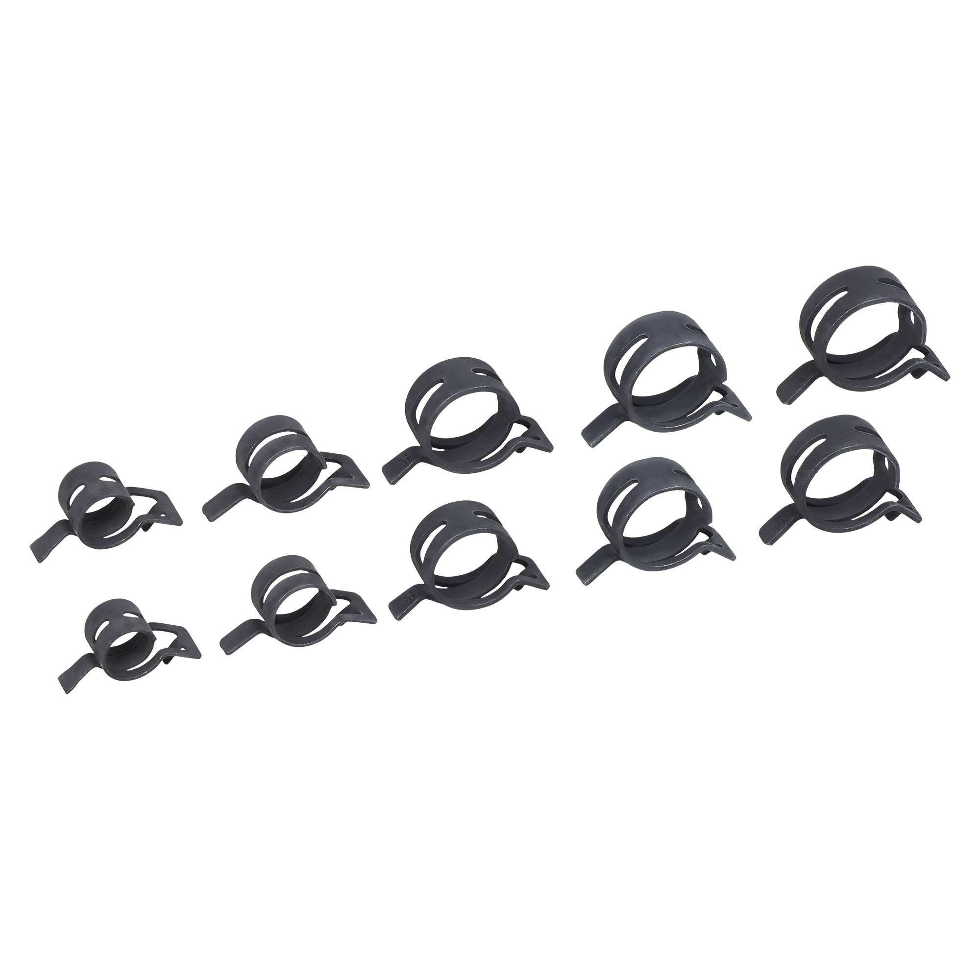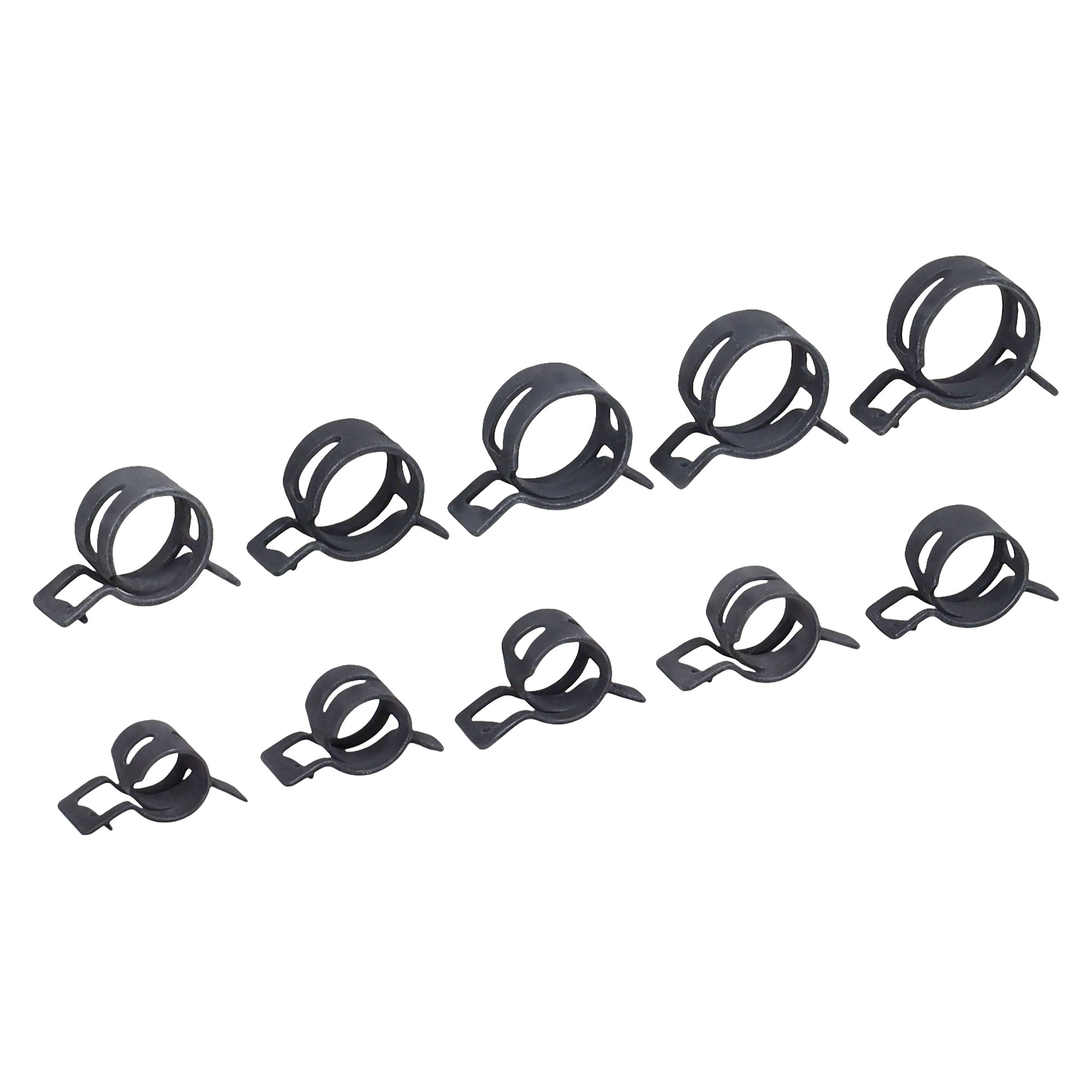 Представляют собой крепежное изделие в виде замкнутого кольца из рессорно-пружинной стали с хромо-цинковым антикоррозийным покрытием. Используются для соединения труб, шлангов и патрубков, которые регулярно подвергаются воздействию высоких температур или резких температурных перепадов. Кроме того, данное изделие позволяет надежно фиксировать шланги, регулярно сползающих или соскальзывающих с поверхности. Монтируется при помощи спец. пассатиж, путем сжатия и разжатия кольца. Широко используются в области машиностроения и автомобильной промышленности. В частности, в автомобилестроении используются в топливных системах, отопительных системах и системах охлаждения. Они идеально подходят к системам «шланг-патрубок». Особенностью этого вида является, что после монтажа они обеспечивают автоматическое подтягивание. Это значит, что при низких или высоких температурах, когда диаметр шланга уменьшается или увеличивается, радиальная зажимная сила будет оставаться постоянной, обеспечивая плотное и стабильное соединение.