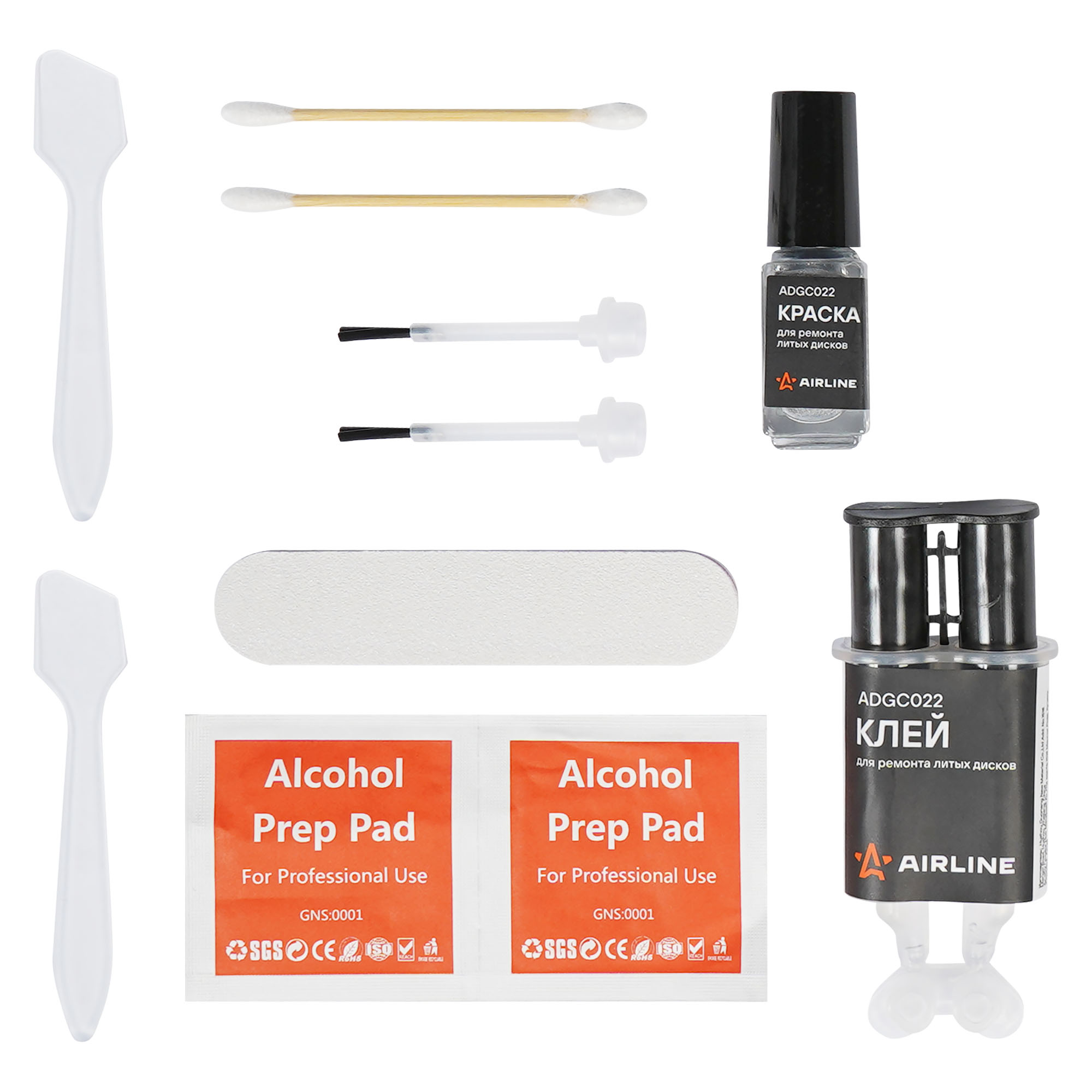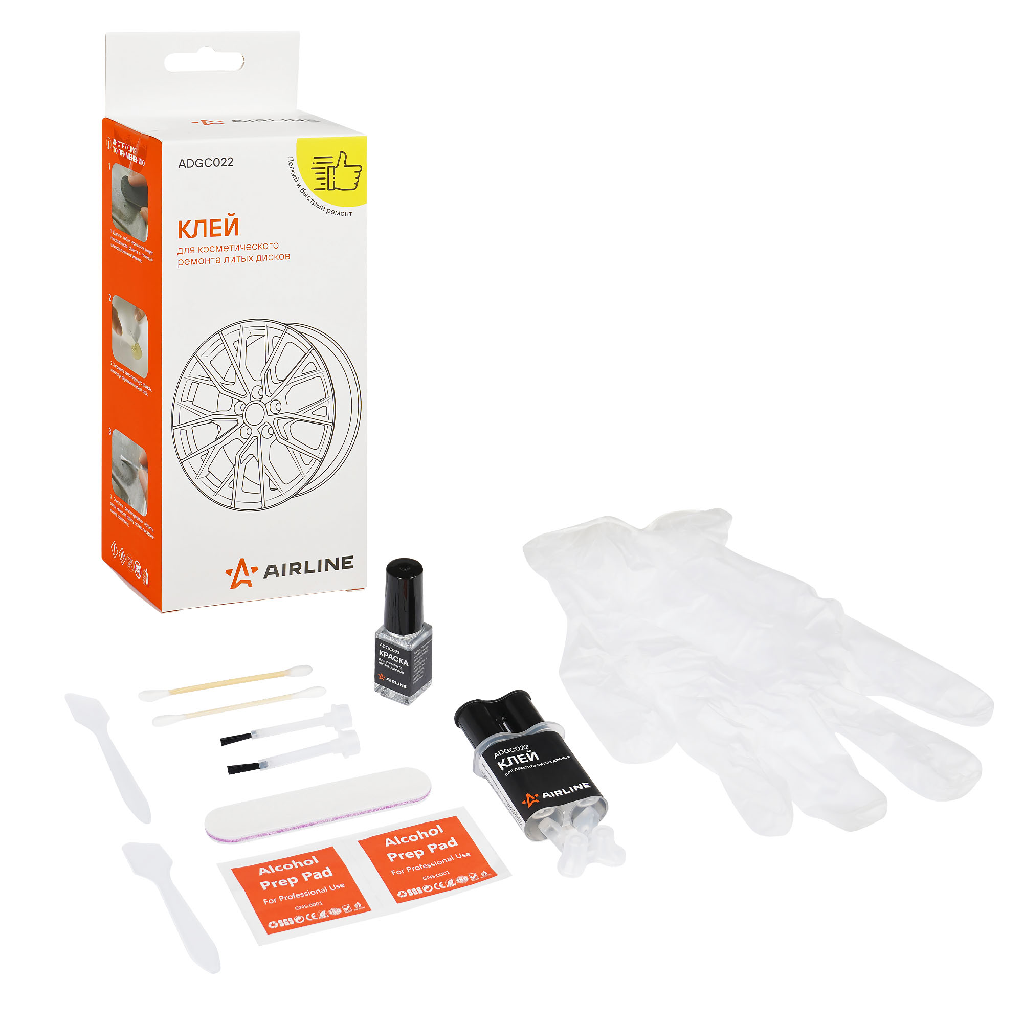 Набор предназначен для ремонта легкосплавных дисков или колпаков от повреждений, полученных от бордюра или при их установки: это царапины, небольшие вмятины, следы шлифовки и других повреждений. Этот комплект подойдет для любого типа колес с алюминиевой поверхностью и включает в себя всё необходимое для устранения потертостей и царапин.
