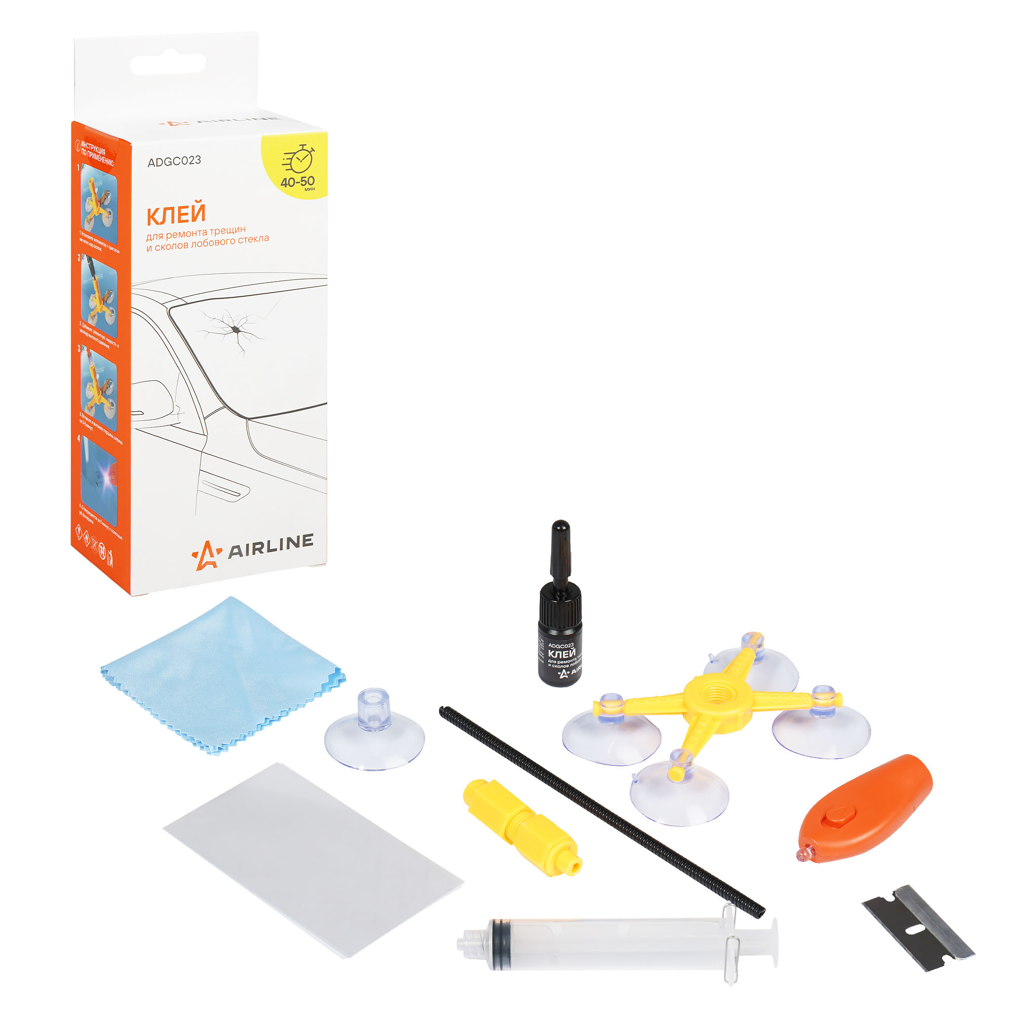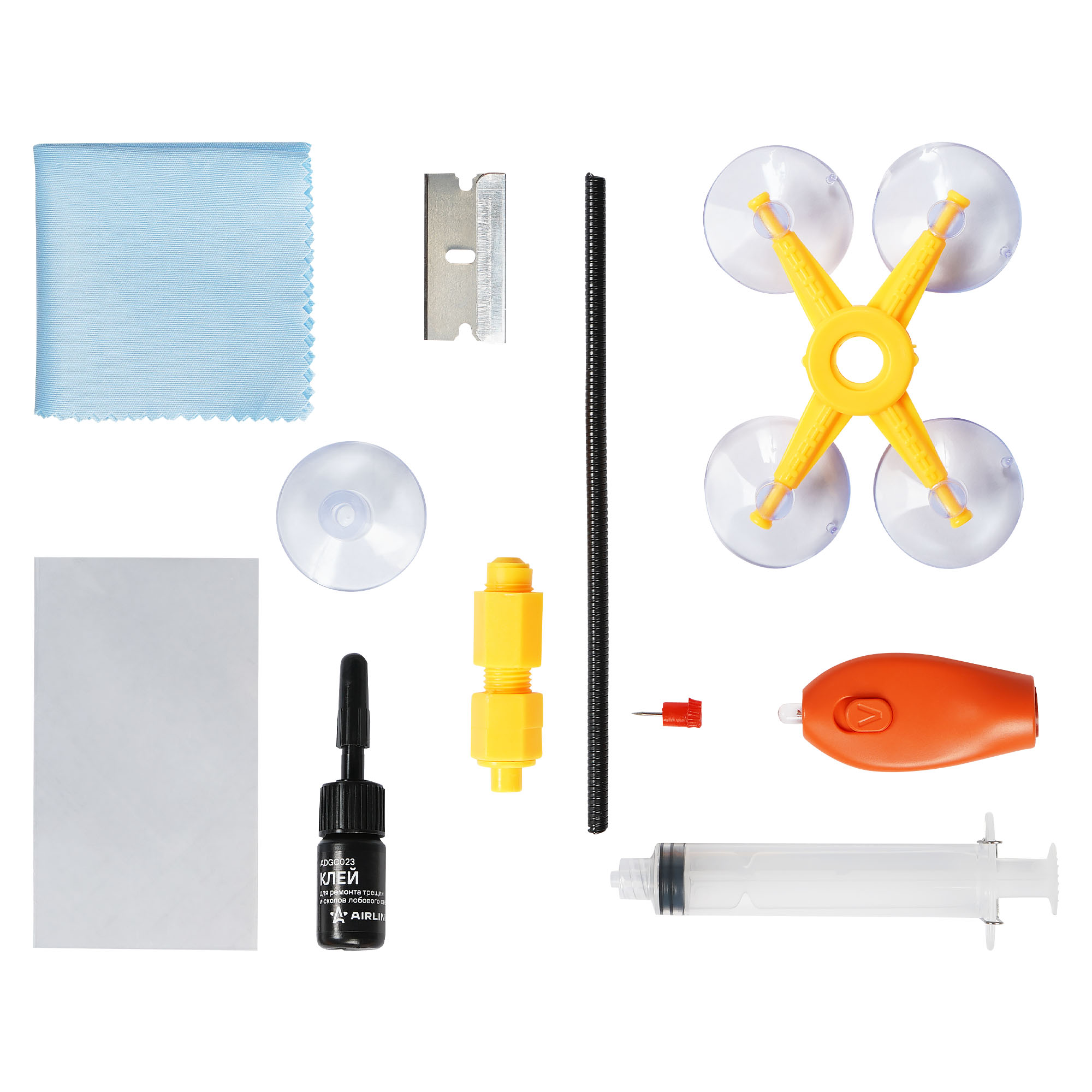 Применяется для ремонта лобового стекла. Останавливает увеличение трещин и сколов от механического повреждения поверхности. Разработан для большинства типов внешнего ветрового стекла. Он может эффективно восстанавливать мелкие сколы от механических повреждений в виде: яблочка, паутины, звездообразных,полумесяцев, трещины не более 30 см и круглые повреждения не более 3 см в диаметре. В комплекте находится подробная пошаговая инструкция по ремонту.