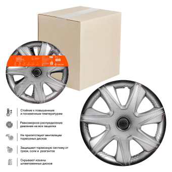 Колпаки колесные 14" "Джой +", серебристо-черный, карбон, компл. 2 шт.