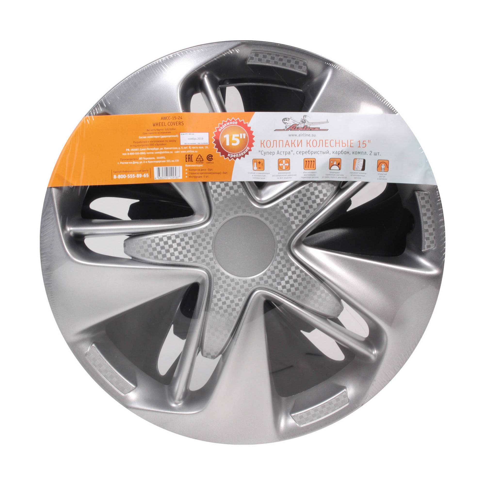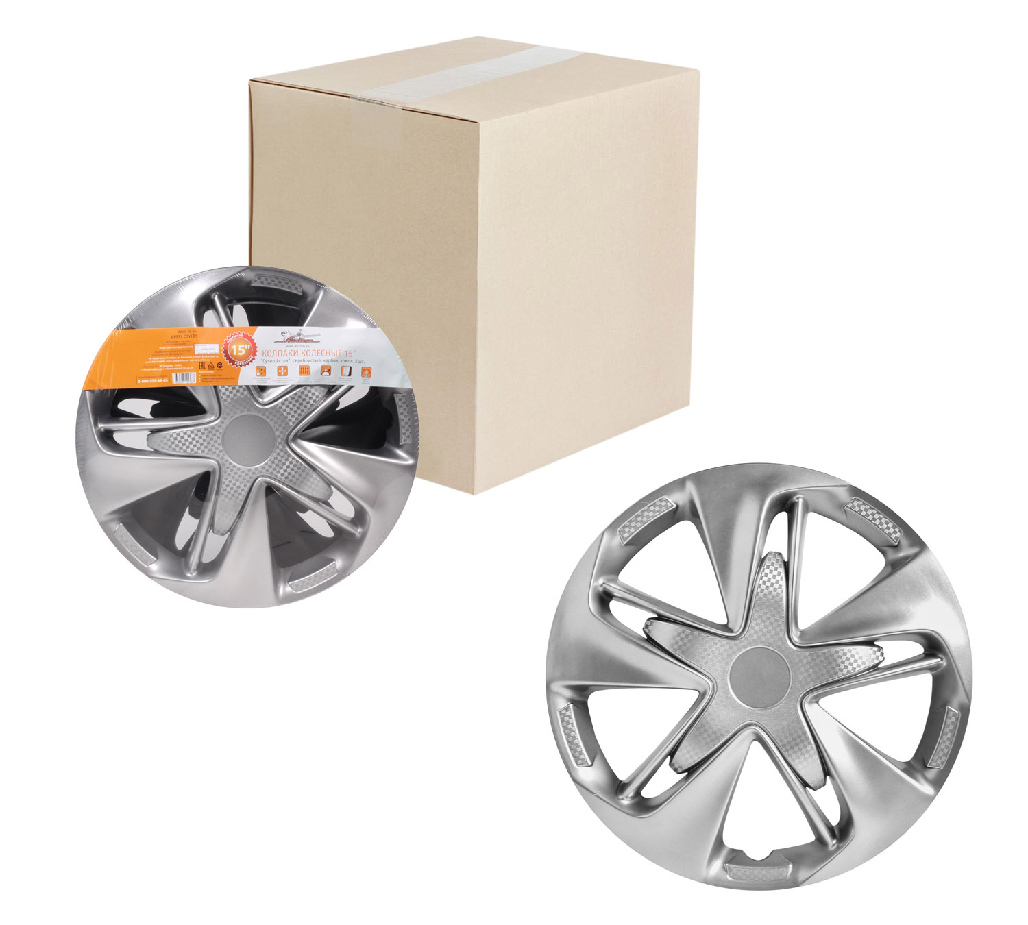 Колпаки колесные 15" "Супер Астра", серебристый, карбон, компл. 2 шт.
