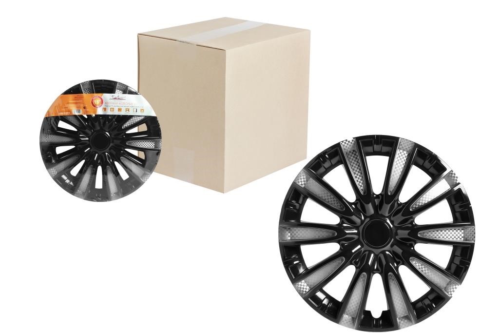 Колпаки колесные 15" "Торнадо Т", серебристый/черный, карбон, компл. 2 шт.
