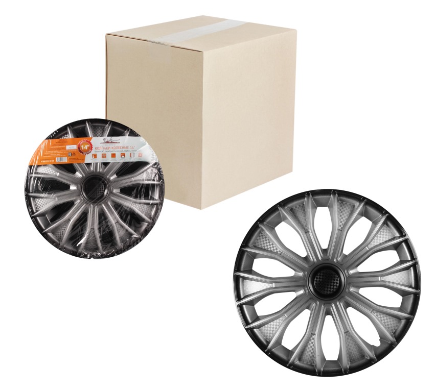 Колпаки колесные 16" "Волтек +", серебристо-черный, карбон, компл. 2 шт.