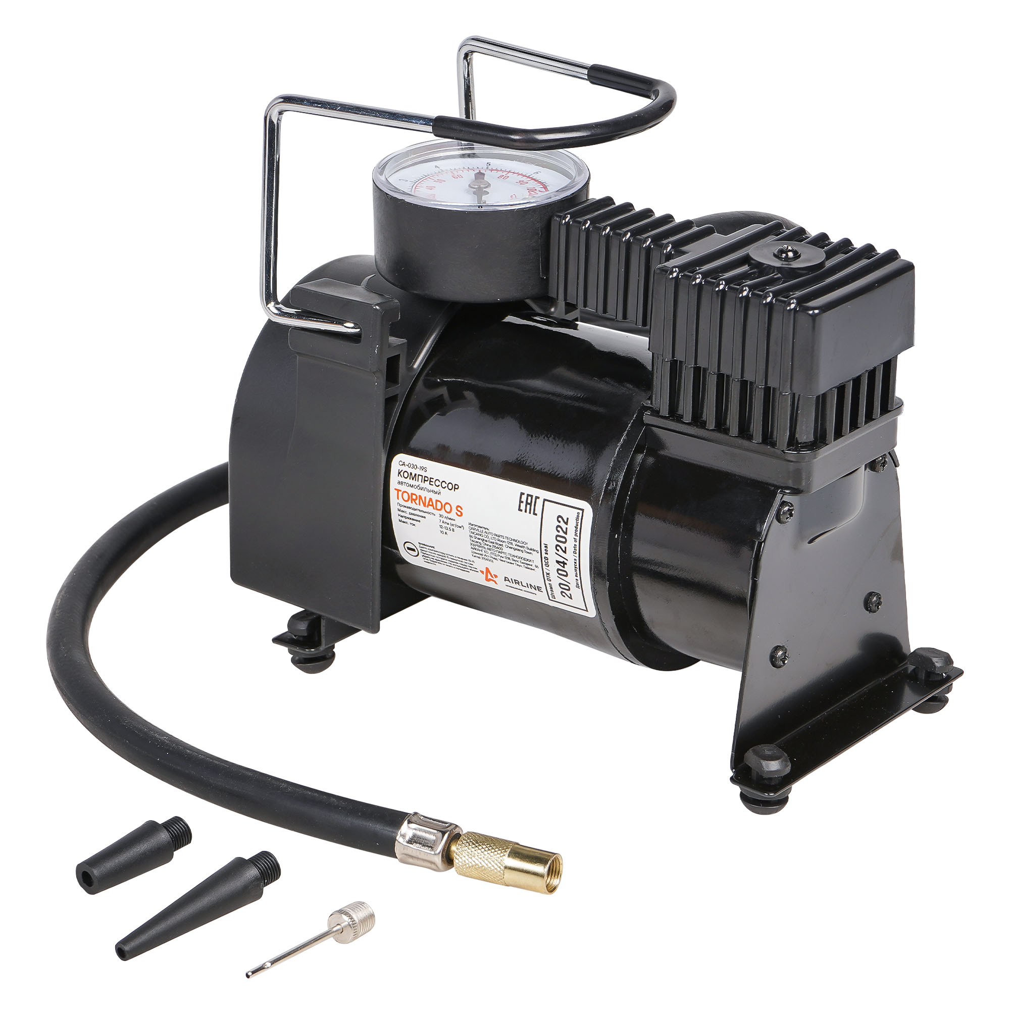Автомобильный компрессор предназначен для получения сжатого воздуха в дорожных условиях. Компрессор модели TORNADO S имеет производительность до 30 л/мин с максимальным давлением 7 Атм (кг/см2). В данном компрессоре используется конструкция с плавающим шатуном, что увеличивает ресурс работы в 2-3 раза, по сравнению с более мощными "металлическими компрессорами". Время накачивания полностью спущенного колеса R14 до 2 Атм не превысит 4 минут. В комплекте 3 насадки.