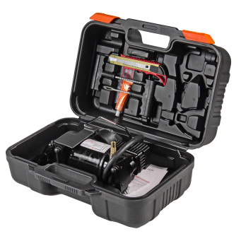 Автомобильный компрессор предназначен для получения сжатого воздуха в дорожных условиях. Мы положили компрессор в надежный пластиковый кейс и добавили в набор ремкомплект для б/к шин с клеем. Компрессор модели TORNADO S имеет производительность до 30 л/мин с максимальным давлением 7 Атм (кг/см2). В данном компрессоре используется конструкция с плавающим шатуном, что увеличивает ресурс работы в 2-3 раза, по сравнению с более мощными "металлическими компрессорами". Время накачивания полностью спущенного колеса R14 до 2 Атм не превысит 4 минут. В комплекте 3 дополнительные насадки.