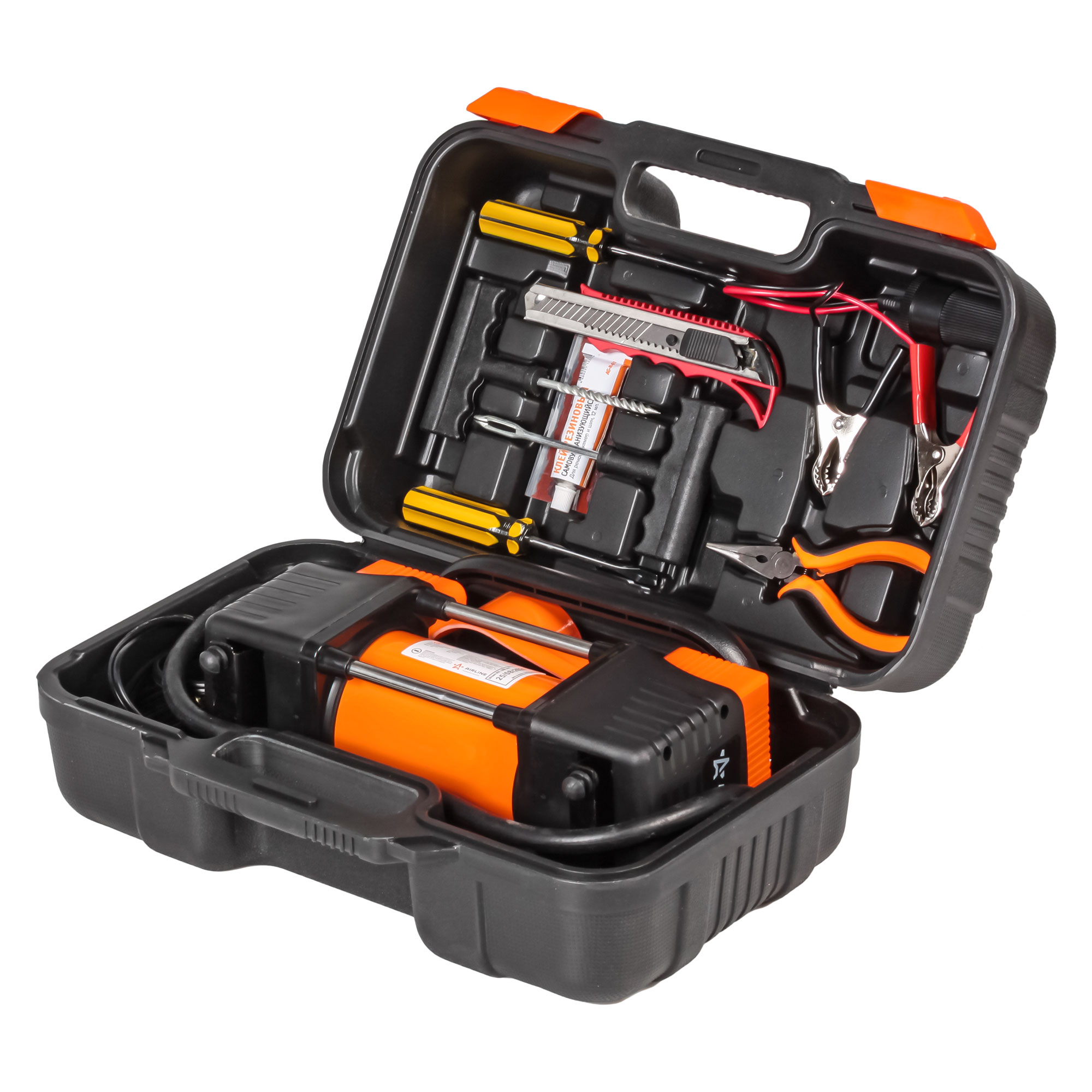 Автомобильные компрессоры серии X имеют "облегченный" двигатель, упрощенную комплектацию и систему охлаждения, благодаря чему достигается существенная экономия, в отличии от линейки CLASSIC-1 / CLASSIC-2 / PROFESSIONAL / EXPERT. Теперь компрессор X5 (CA-020-01NR) комплектуется пластиковым кейсом и набором инструментов для экстренного ремонта. Компрессор X5 и X6 являются самыми мощными в линейке компрессоров с производительностью 50 л/мин. и 70 л/мин. соответственно. Компрессор имеет двухпоршневую конструкцию, благодаря чему достигается максимальная производительность. Фишкой компрессора X5 является наличие адаптера, для работы от АКБ - вы можете подключить его не только к прикуривателю, но и напрямую к аккумулятору автомобиля. Колеса R14 до 2 Атм компрессор накачивает за 1,5 мин!