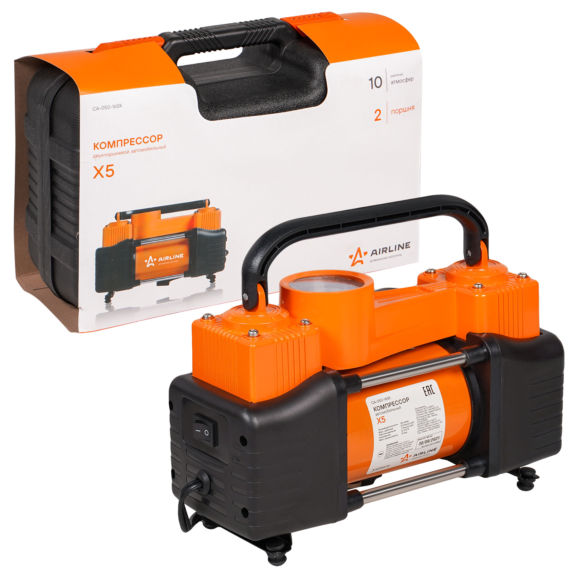 Автомобильные компрессоры серии X имеют "облегченный" двигатель, упрощенную комплектацию и систему охлаждения, благодаря чему достигается существенная экономия, в отличии от линейки CLASSIC-1 / CLASSIC-2 / PROFESSIONAL / EXPERT. Компрессор X5 и X6 являются самыми мощными в линейке компрессоров с производительностью 50 л/мин. и 70 л/мин. соответственно. Компрессор имеет двухпоршневую конструкцию, благодаря чему достигается максимальная производительность. Компрессор X5 (CA-050-16S) упаковывается в коробку, а CA-050-16SK комплектуется пластиковым кейсом. Фишкой компрессоров X5 является наличие адаптера, для работы от АКБ - вы можете подключить его не только к прикуривателю, но и напрямую к аккумулятору автомобиля. Колеса R14 до 2 Атм компрессор накачивает за 1,5 мин!