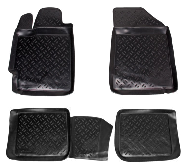Ковры изготовлены из современного полимера ТЭП, который не теряет эластичность и сохраняет форму при пониженных и повышенных температурах. Ковры идеально повторяют форму пола выбранного автомобиля за счет снятия его индивидуальных размеров 3D сканером. Ковры имеют современный рисунок имитирующий протектор шин. У большинства моделей водительский коврик имеет ворсовый подпятник для предотвращения соскальзывания ноги, а так же оснащены крепежом для крепления их в штатных местах. Ковры преображают вид салона автомобиля и защищают напольный ковролин от истирания, намокания и загрязнений на долгое время. Преимущества ковров: эластичный материал стойкие к повышенным и пониженным температурам (- 40/+ 65 ?С) идеально повторяют форму пола авто(3D сканирование) не имеют неприятного запахавысокие бортикимодный дизайн