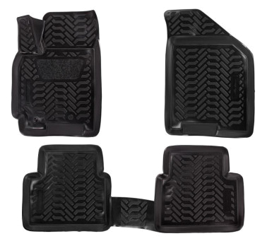 Ковры изготовлены из современного полимера ТЭП, который не теряет эластичность и сохраняет форму при пониженных и повышенных температурах. Ковры идеально повторяют форму пола выбранного автомобиля за счет снятия его индивидуальных размеров 3D сканером. Ковры имеют современный рисунок имитирующий протектор шин. У большинства моделей водительский коврик имеет ворсовый подпятник для предотвращения соскальзывания ноги, а так же оснащены крепежом для крепления их в штатных местах. Ковры преображают вид салона автомобиля и защищают напольный ковролин от истирания, намокания и загрязнений на долгое время. Преимущества ковров: эластичный материал стойкие к повышенным и пониженным температурам (- 40/+ 65 ?С) идеально повторяют форму пола авто(3D сканирование) не имеют неприятного запахавысокие бортикимодный дизайн
