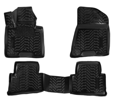 Ковры изготовлены из современного полимера ТЭП, который не теряет эластичность и сохраняет форму при пониженных и повышенных температурах. Ковры идеально повторяют форму пола выбранного автомобиля за счет снятия его индивидуальных размеров 3D сканером. Ковры имеют современный рисунок имитирующий протектор шин. У большинства моделей водительский коврик имеет ворсовый подпятник для предотвращения соскальзывания ноги, а так же оснащены крепежом для крепления их в штатных местах. Ковры преображают вид салона автомобиля и защищают напольный ковролин от истирания, намокания и загрязнений на долгое время. Преимущества ковров: эластичный материал стойкие к повышенным и пониженным температурам (- 40/+ 65 ?С) идеально повторяют форму пола авто(3D сканирование) не имеют неприятного запахавысокие бортикимодный дизайн