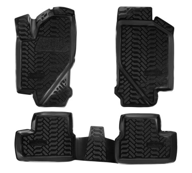 Ковры изготовлены из современного полимера ТЭП, который не теряет эластичность и сохраняет форму при пониженных и повышенных температурах. Ковры идеально повторяют форму пола выбранного автомобиля за счет снятия его индивидуальных размеров 3D сканером. Ковры имеют современный рисунок имитирующий протектор шин. У большинства моделей водительский коврик имеет ворсовый подпятник для предотвращения соскальзывания ноги, а так же оснащены крепежом для крепления их в штатных местах. Ковры преображают вид салона автомобиля и защищают напольный ковролин от истирания, намокания и загрязнений на долгое время. Преимущества ковров: эластичный материал стойкие к повышенным и пониженным температурам (- 40/+ 65 ?С) идеально повторяют форму пола авто(3D сканирование) не имеют неприятного запахавысокие бортикимодный дизайн