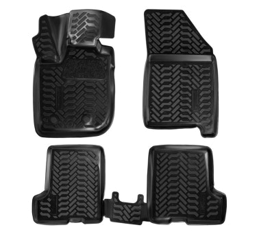 Ковры изготовлены из современного полимера ТЭП, который не теряет эластичность и сохраняет форму при пониженных и повышенных температурах. Ковры идеально повторяют форму пола выбранного автомобиля за счет снятия его индивидуальных размеров 3D сканером. Ковры имеют современный рисунок имитирующий протектор шин. У большинства моделей водительский коврик имеет ворсовый подпятник для предотвращения соскальзывания ноги, а так же оснащены крепежом для крепления их в штатных местах. Ковры преображают вид салона автомобиля и защищают напольный ковролин от истирания, намокания и загрязнений на долгое время. Преимущества ковров: эластичный материал стойкие к повышенным и пониженным температурам (- 40/+ 65 ?С) идеально повторяют форму пола авто(3D сканирование) не имеют неприятного запахавысокие бортикимодный дизайн